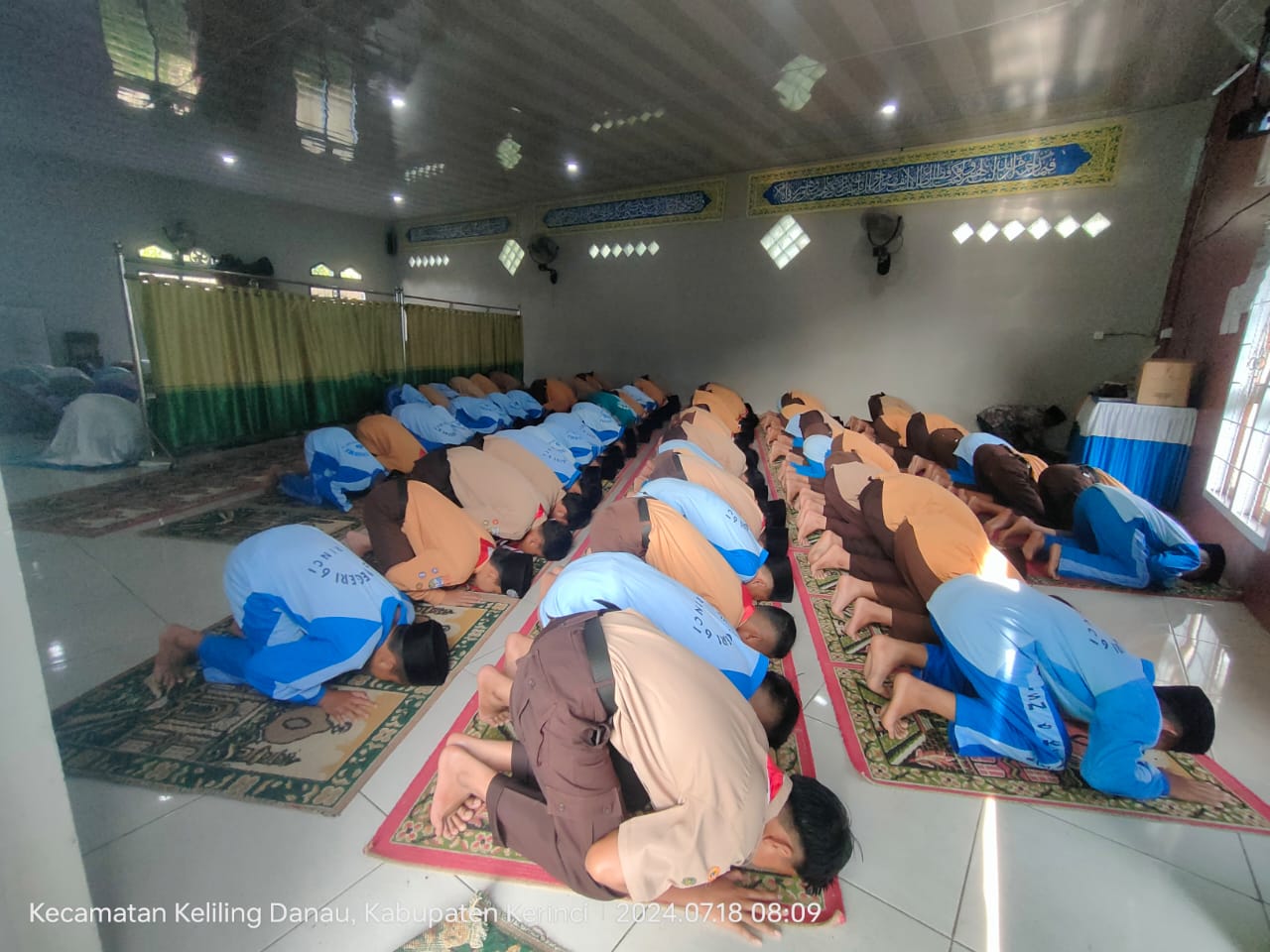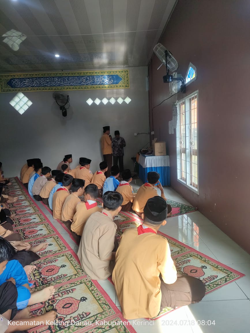 Kerinci (MTsN 6 Kerinci) – MTsN 6 Kerinci mengawali kegiatan MATSAMA (Masa Ta'aruf Siswa Madrasah) hari terakhir dengan Sholat Dhuha berjamaah. Kegiatan ini merupakan bagian dari upaya madrasah untuk menanamkan dan meningkatkan nilai-nilai Islam kepada para peserta didik. Sesuai dengan pepatah Arab "Man Syabba Ala Syaiin, Syaaba Alaihi" yang berarti "Barang siapa yang membiasakan sesuatu (di waktu mudanya), maka ia akan terbiasa melakukannya (di masa tuanya)," MTsN 6 Kerinci membiasakan siswa/i untuk melaksanakan Sholat Dhuha setiap pagi sebelum memulai kegiatan belajar.