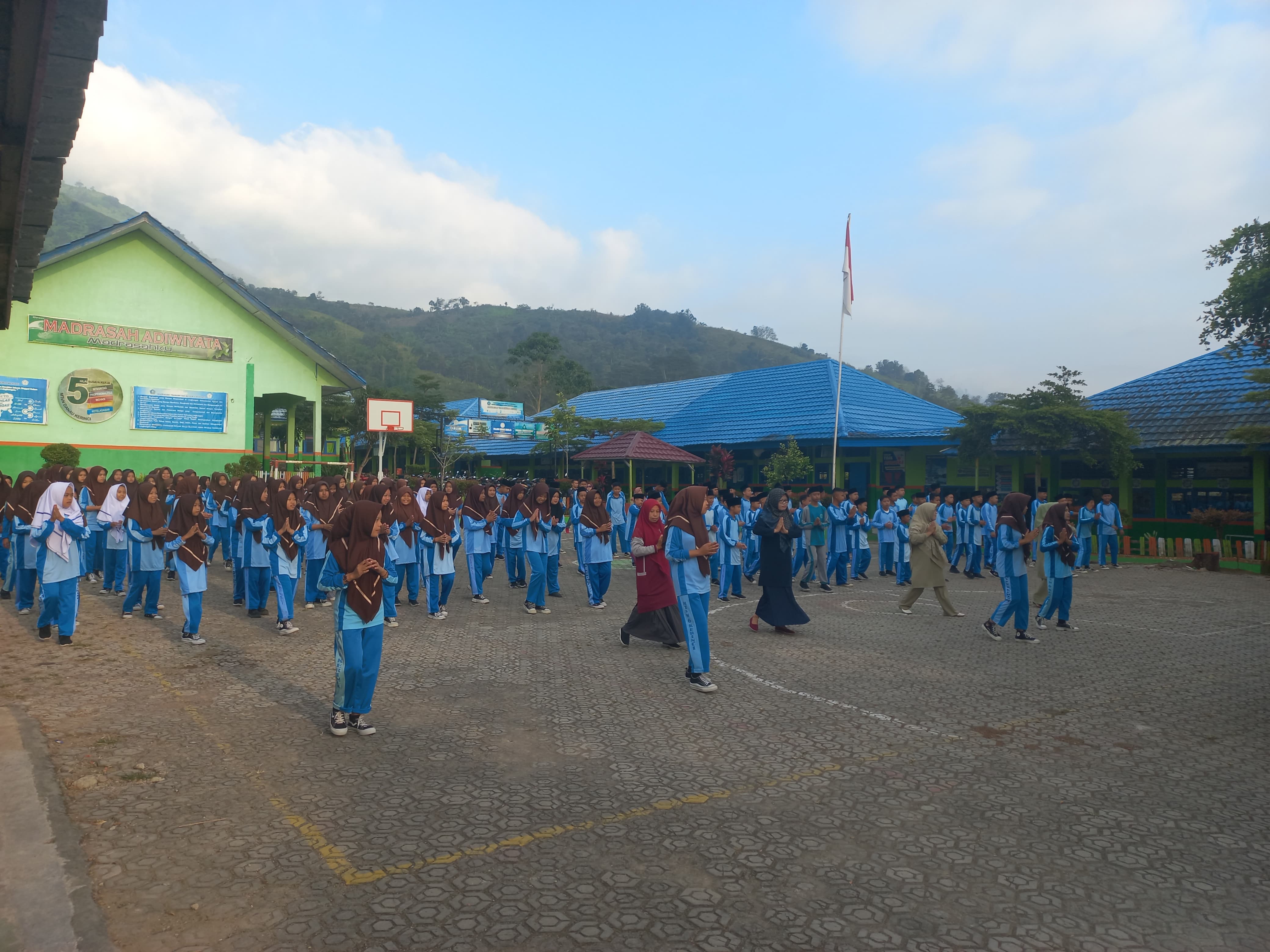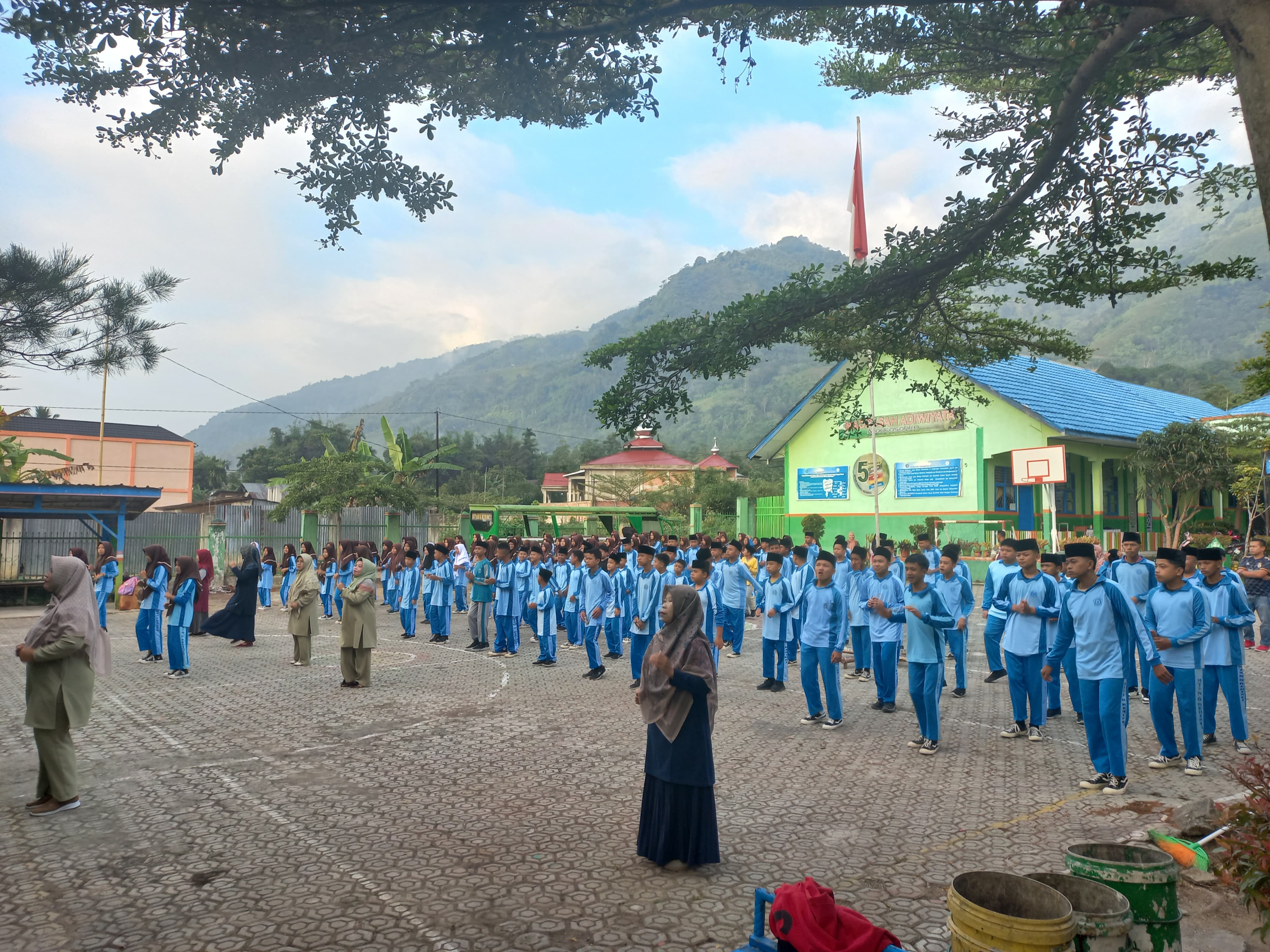 Kerinci (MTsN 6 Kerinci) – Sabtu pagi ini, kegiatan di MTsN 6 Kerinci diawali dengan senam bersama yang diadakan di lapangan madrasah. Senam pagi ini merupakan aktivitas fisik rutin yang bertujuan untuk menjaga kesegaran jasmani seluruh warga madrasah.