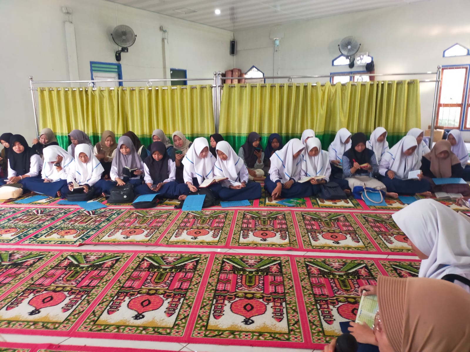 Para peserta mulai berdatangan bahkan sebelum kegiatan dimulai, menunjukkan semangat yang tinggi. Sebagian dari mereka mengikuti Program Tahfidz & Tilawah ini setelah sebelumnya terlibat dalam kegiatan pembahasan materi pelajaran. Jumlah peserta yang cukup banyak membuat kegiatan ini dibagi menjadi tiga ruang kelas, untuk memastikan setiap peserta mendapatkan bimbingan yang optimal.