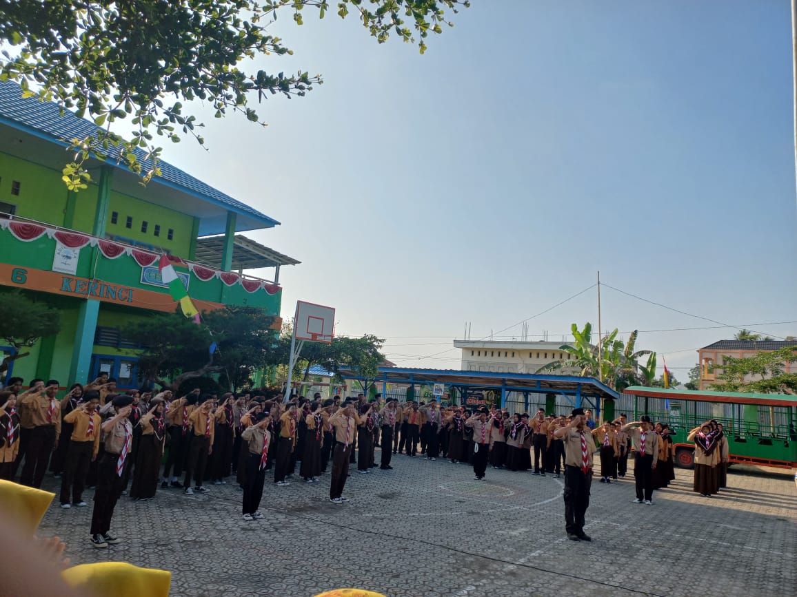Kerinci (MTsN 6 Kerinci) – Pada hari ini, MTsN 6 Kerinci menggelar upacara peringatan Hari Pramuka ke-63 yang berlangsung khidmat di lapangan madrasah. Upacara ini diikuti oleh seluruh PTK (Pendidik dan Tenaga Kependidikan) serta siswa-siswi MTsN 6 Kerinci. Petugas upacara diambil dari anggota Pramuka, dengan Kak Fika Adwi Putra, S.AP bertindak sebagai pemimpin upacara dan Kak Agustiawan, S.Pt sebagai pembina upacara.