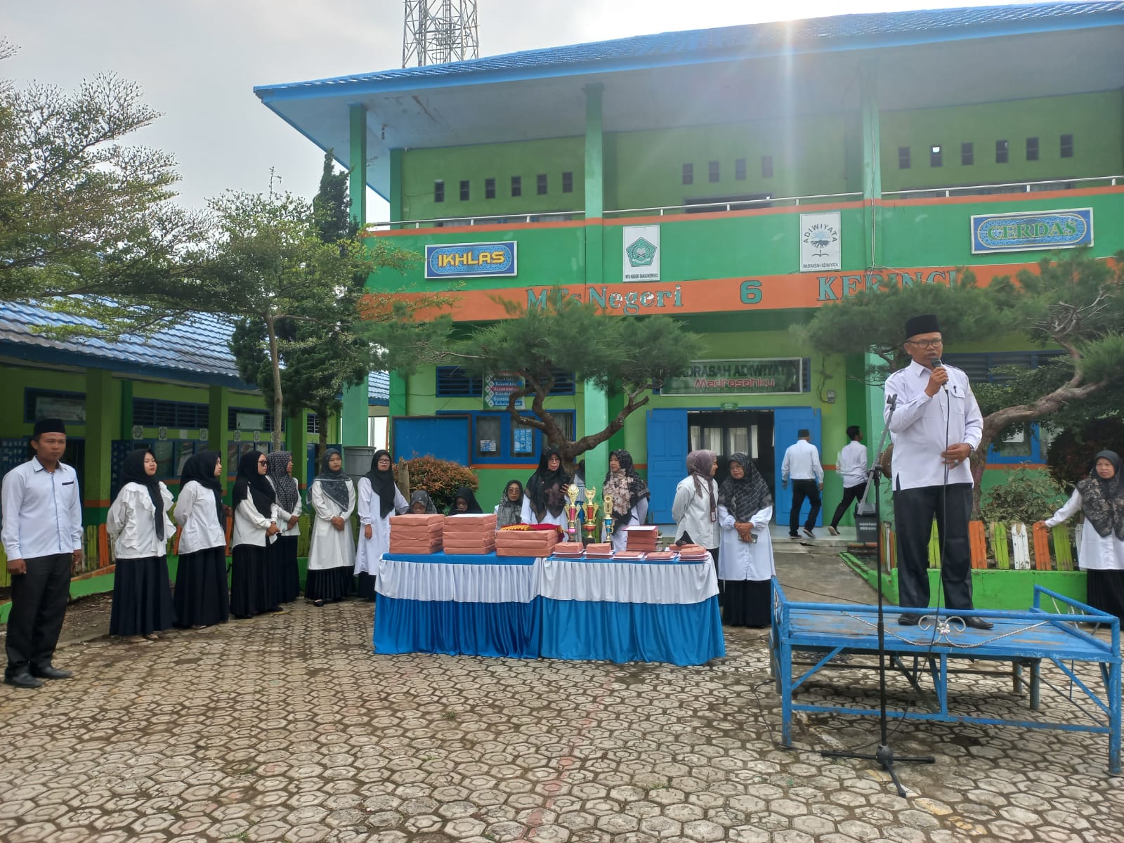 Kerinci (MTsN 6 Kerinci) – MTsN 6 Kerinci mengadakan acara pembagian hadiah bagi para pemenang lomba perayaan Hari Kemerdekaan Republik Indonesia ke-79 setelah pelaksanaan upacara bendera pada Senin, 26 Agustus 2024. Acara ini berlangsung dengan sederhana namun penuh semangat, di mana Kepala Madrasah bersama guru-guru lainnya memberikan hadiah secara langsung kepada para siswa yang berhasil meraih juara dalam berbagai perlombaan.