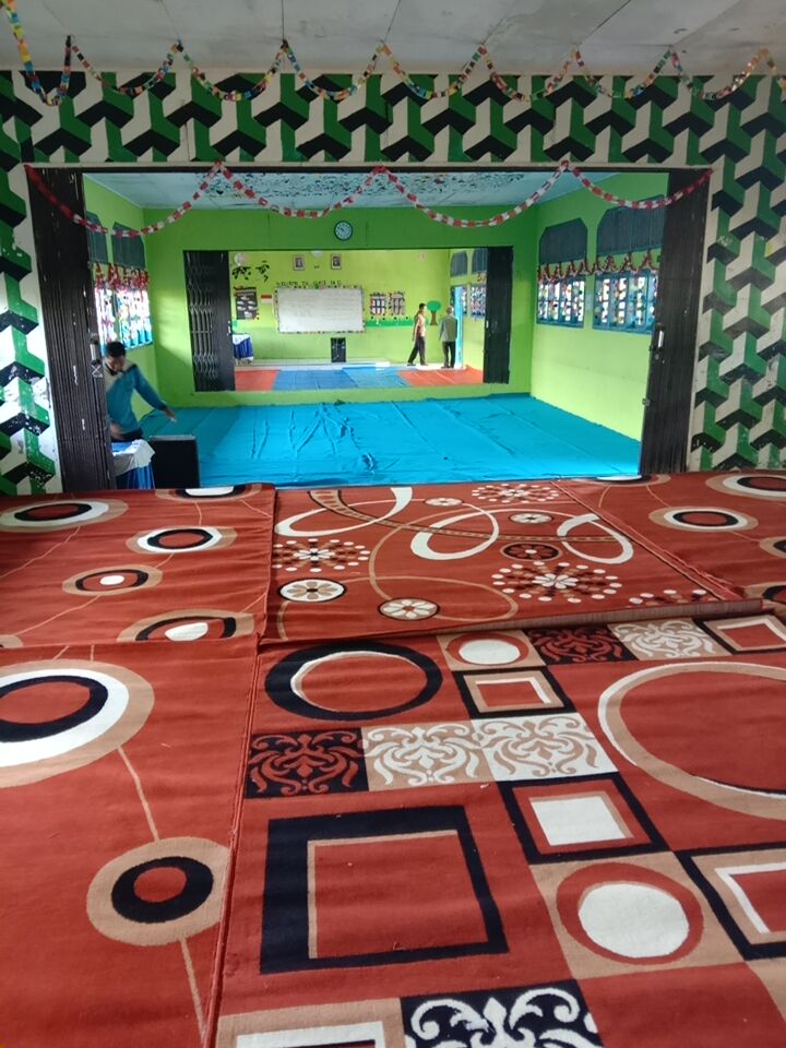 Para siswa membantu dalam berbagai hal, mulai dari mengangkat bangku dan meja, menyapu halaman madrasah, menyiapkan tikar untuk tempat duduk, hingga pemasangan sound system. Salah seorang siswa mengungkapkan kegembiraannya, ``Kami senang bisa membantu bapak/ibu guru mempersiapkan acara Maulid Nabi. Ini adalah cara kami untuk menunjukkan rasa cinta dan hormat kepada Nabi Muhammad SAW``.