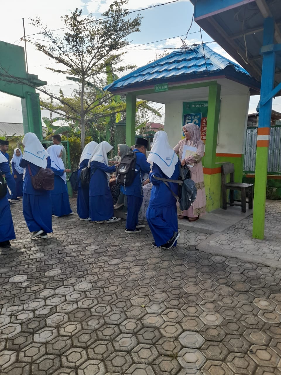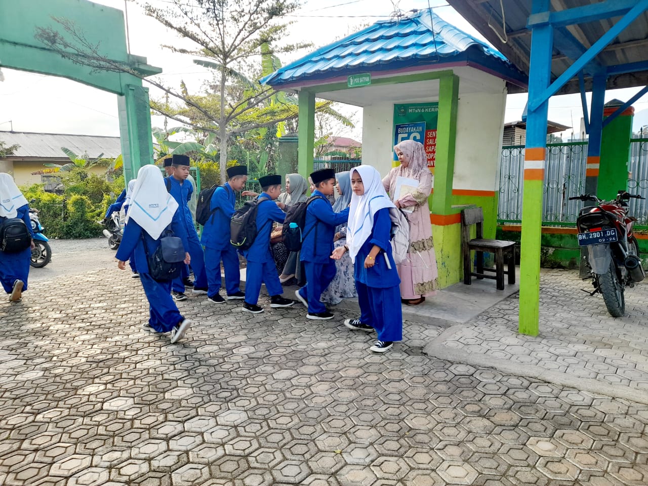 Kerinci (MTsN 6 Kerinci) – Setiap pagi, warga Madrasah Tsanawiyah Negeri 6 Kerinci disambut dengan senyum manis, ucapan Assalamualaikum, serta sapaan hangat ``Apa kabar?``. Budaya 5S yang terdiri dari Senyum, Salam, Sapa, Sopan, dan Santun telah menjadi rutinitas di MTsN 6 Kerinci, dilakukan oleh pimpinan dan guru piket secara bergantian setiap hari mulai Senin hingga Sabtu.
