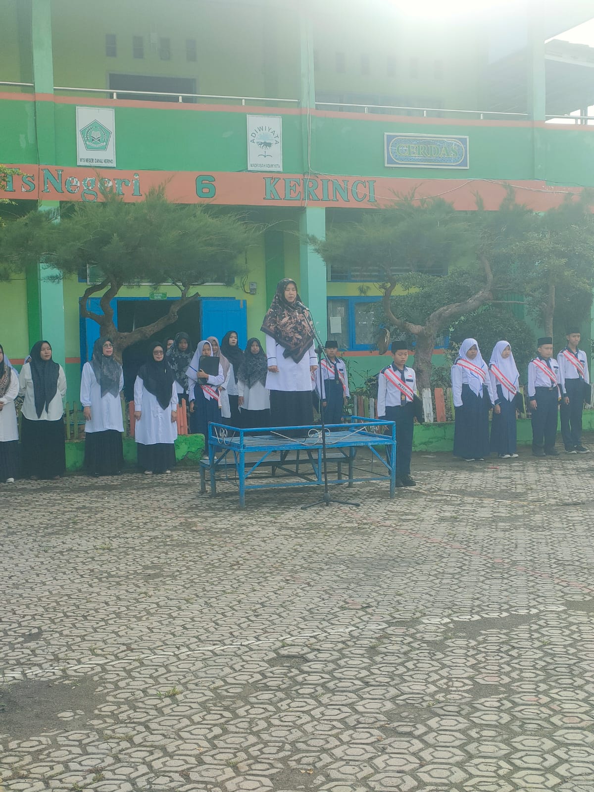 Kerinci (MTsN 6 Kerinci) – Setiap hari Senin, MTsN 6 Kerinci melaksanakan kegiatan Upacara Bendera sebelum Kegiatan Belajar Mengajar (KBM) dimulai. Upacara bendera ini merupakan kegiatan wajib di seluruh sekolah, baik negeri maupun swasta, sesuai dengan Permendikbud RI Nomor 23 Tahun 2015 tentang Penumbuhan Budi Pekerti (PBP).
