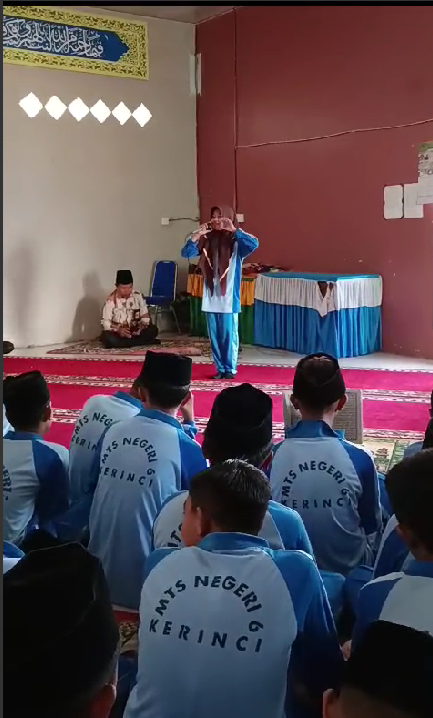 Kerinci (MTsN 6 Kerinci) – Lomba cerita kepahlawanan yang diselenggarakan di MTsN 6 Kerinci dalam rangka memperingati Hari Pahlawan 2024 berakhir dengan penampilan istimewa dari Nebyza, siswa kelas VII A. Nebyza, yang memiliki segudang prestasi sejak di sekolah dasar dan merupakan peserta lomba cerita tingkat provinsi, memberikan performa memukau di penghujung acara, berhasil membius para pendengar yang menyaksikan penampilannya.