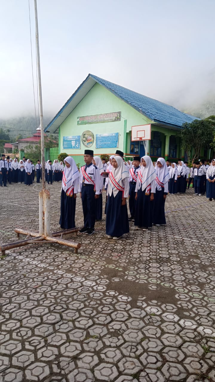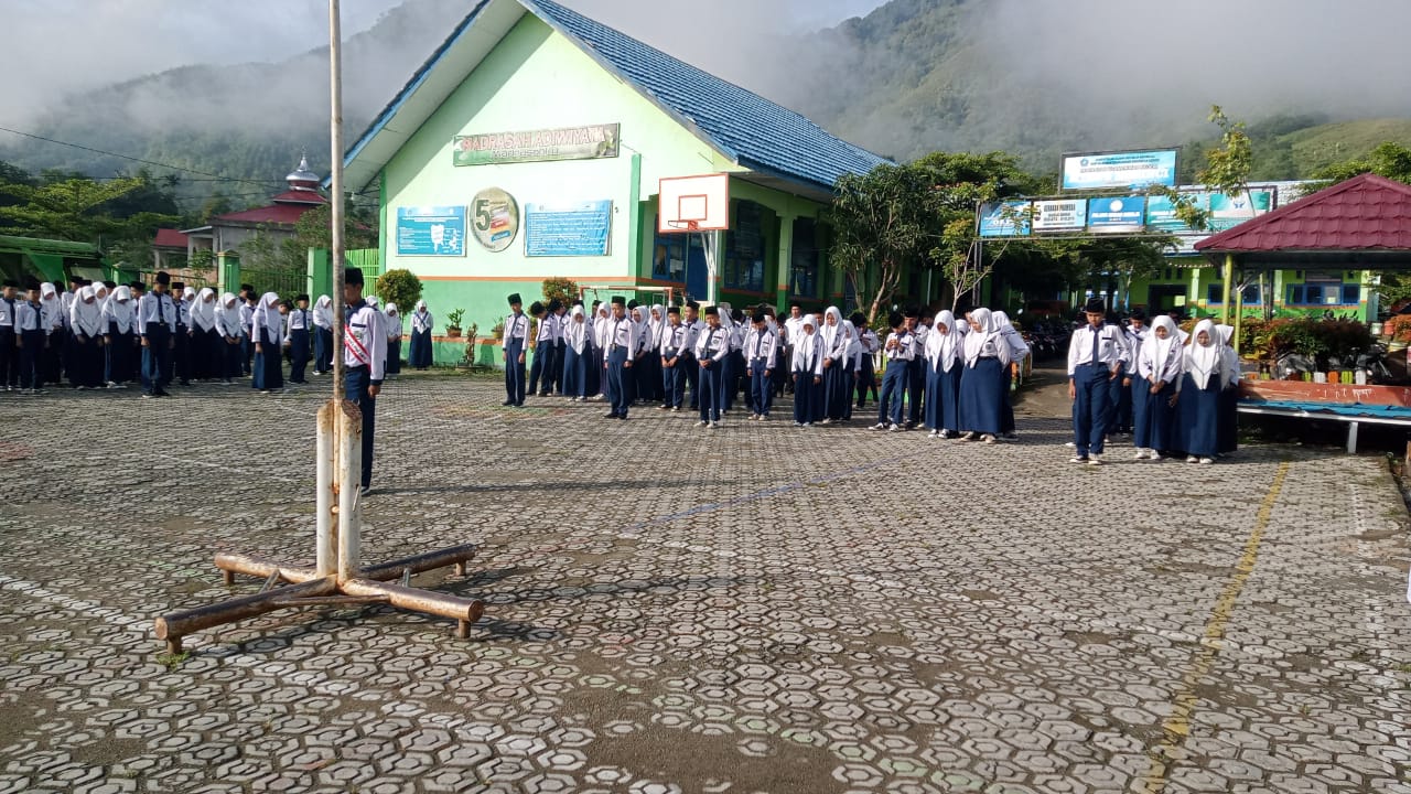 Kerinci (MTsN 6 Kerinci) – Hari ini, MTsN 6 Kerinci melaksanakan upacara bendera untuk memperingati Hari Pahlawan 10 November. Upacara ini diikuti oleh seluruh siswa dan guru dengan hikmat, dipimpin oleh Wakil Kepala Bidang Kesiswaan, H. Afrial, S.Pd.I., sebagai pembina. Anggota Pramuka ditunjuk sebagai petugas upacara, yang menambah semangat nasionalisme dalam kegiatan tersebut.