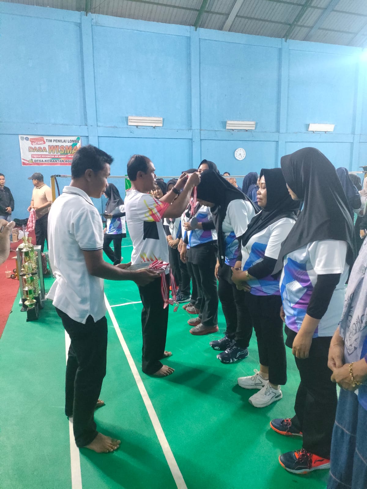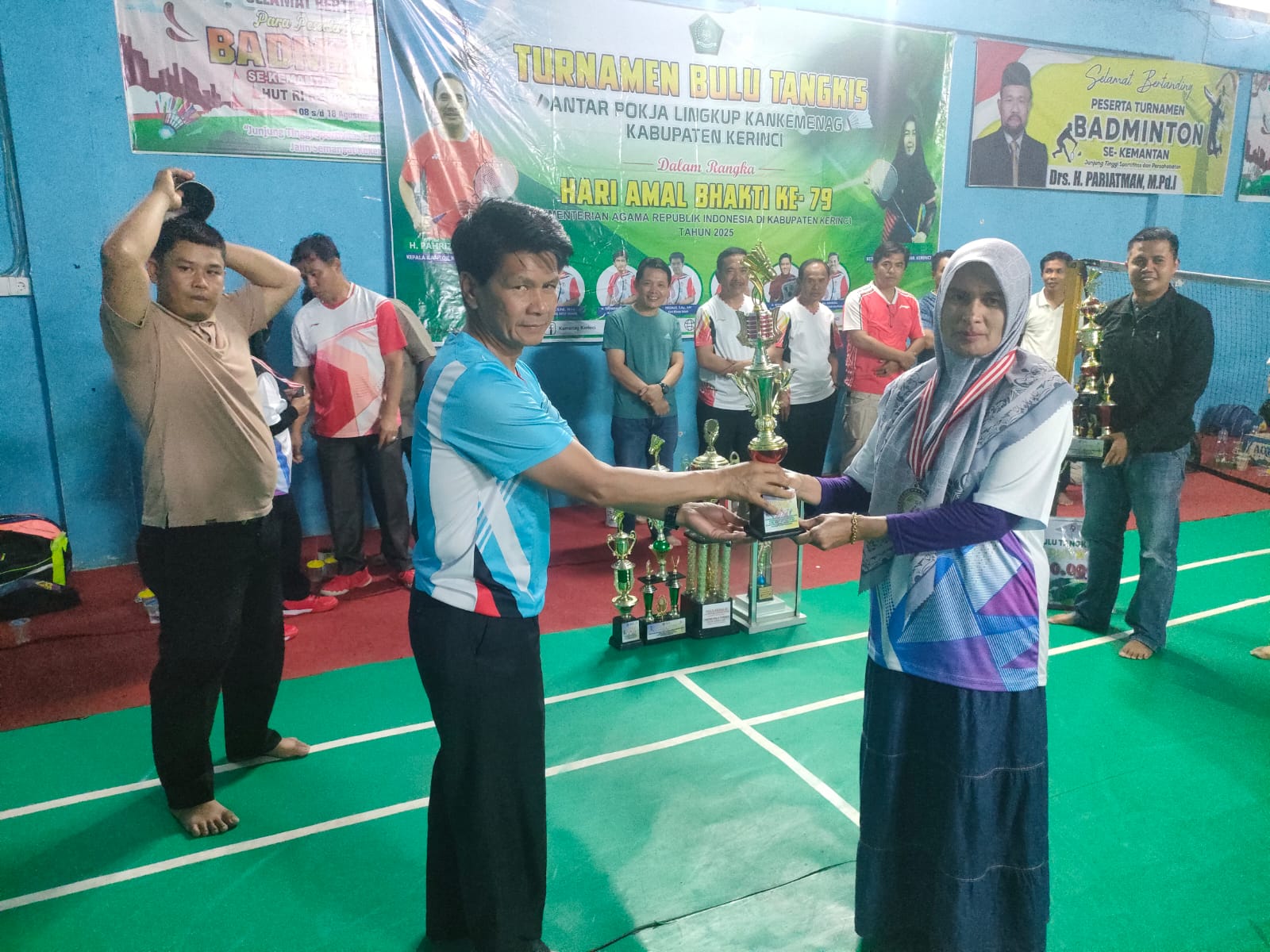 Penyerahan trofi dan medali dilakukan langsung oleh Kepala Kantor, didampingi Kasubag TU, Kasi Pendidikan Madrasah, Kasi PAIS, serta segenap pengawas dan kepala madrasah dalam lingkup Kantor Kementerian Agama Kabupaten Kerinci.