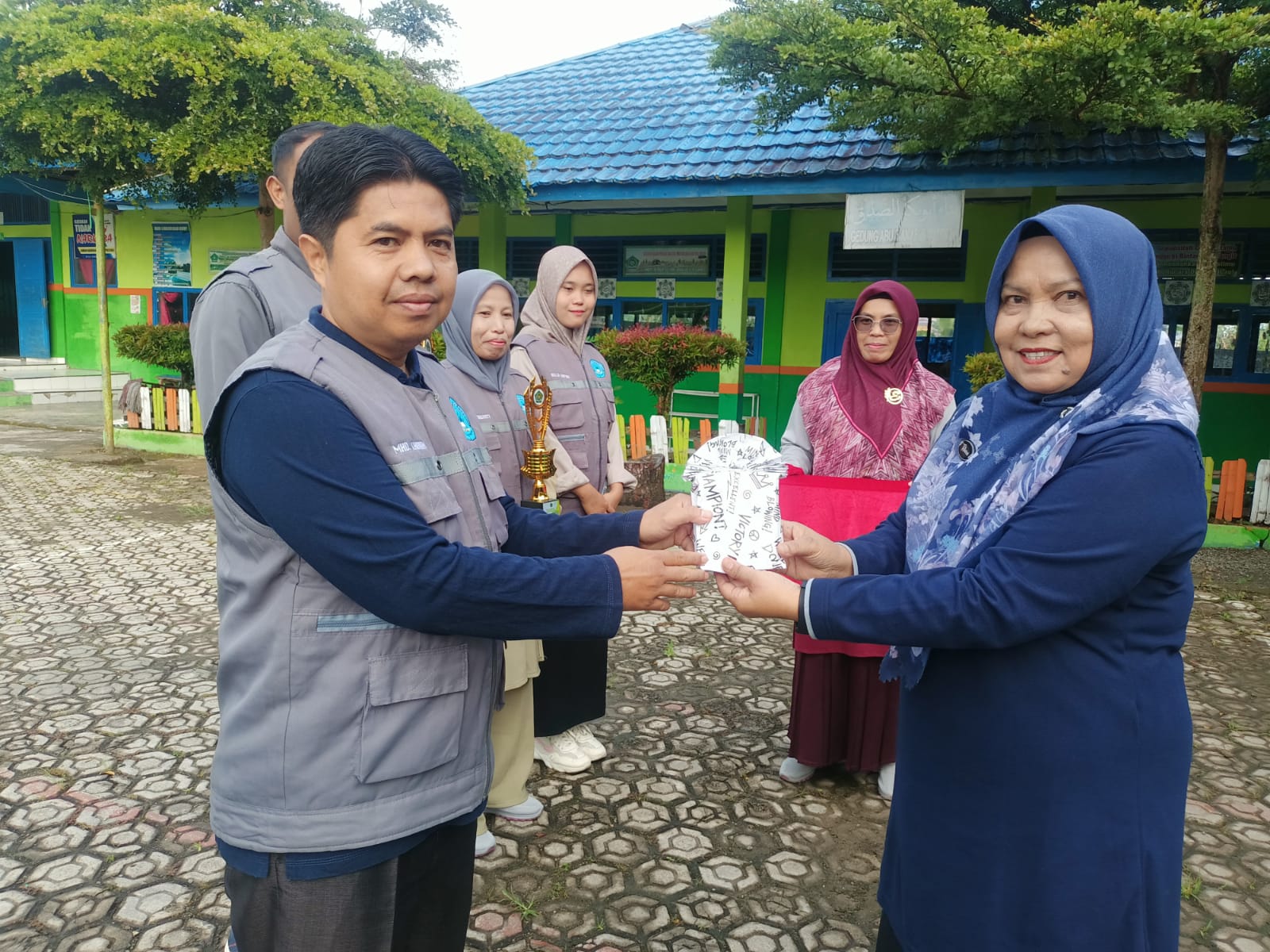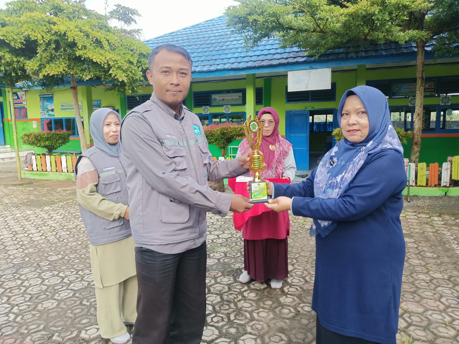 Setelah memberikan sambutan, Kepala MTsN 6 Kerinci menyerahkan piala kepada perwakilan Tim Website serta memberikan bonus penghargaan dari madrasah sebagai bentuk apresiasi.