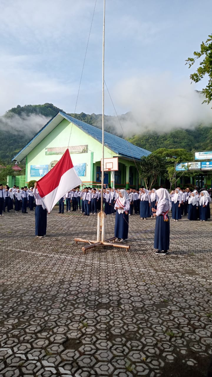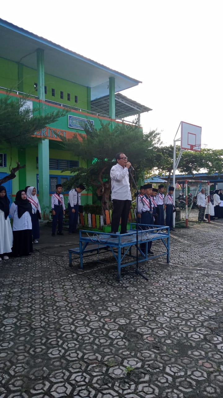 Kerinci (MTsN 6 Kerinci) – MTsN 6 Kerinci melaksanakan Upacara Pengibaran Bendera (UPB) perdana pada semester genap Tahun Pelajaran 2024/2025, Senin (13/01/2025). Upacara ini dipimpin oleh Amri Daran, S.Pd sebagai Pembina, dengan petugas upacara dari kelas IX A.