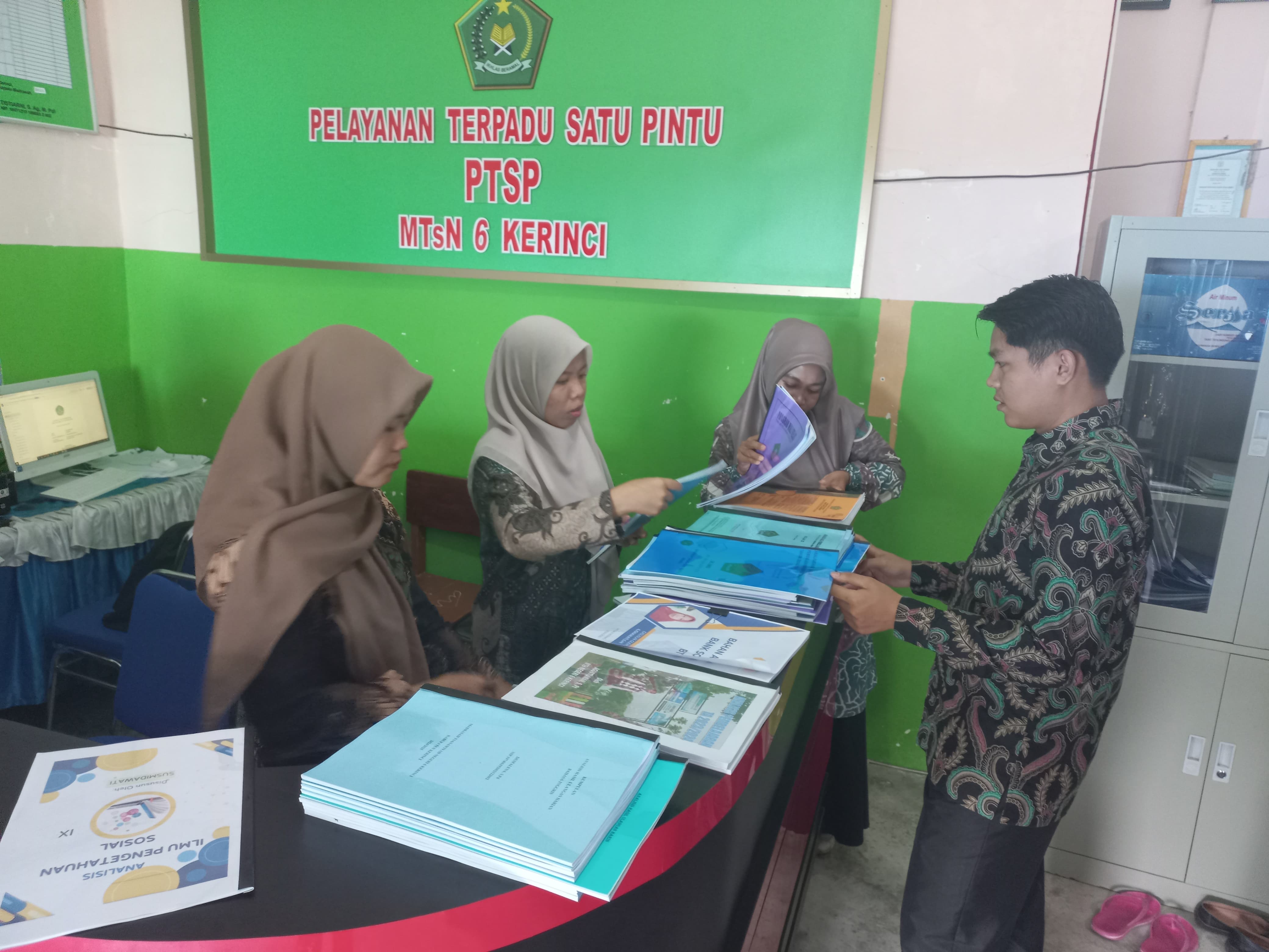 Kerinci (MTsN 6 Kerinci) Kamis 16-01-2025 Tim Persiapan Penilaian Kinerja Kepala Madrasah (PKKM) MTsN 6 Kerinci bertempat di ruang Tata Usaha, melakukan pengecekan terhadap kelengkapan dokumen dan sarana pendukung dalam rangka menghadapi proses penilaian kinerja yang akan dilaksanakan dalam waktu dekat.