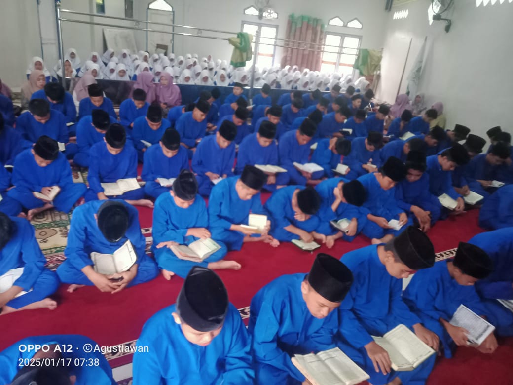 Kerinci,(17/01/2025),…. MTs Negeri 6 Kerinci kembali menggelar kegiatan rutin Jumat Yasinan Bersama Kegiatan dimulai pada pukul 07.15 pagi di Mushalla dikarenakan lapangan sekolah tidak memungkinkan dipakai akibat hujan yang mengguyur Tanjung Pauh, di mana seluruh siswa dan guru berkumpul untuk mengikuti Jumat Yasinan. Kegiatan Yasinan minggu ini yang mendapat giliran memimpin adalah Siswa Kelas VII C dengan Wali Kelasnya Yaitu Neci Fitri Ayu adapun siswa yang bertugas sebagai Pemimpin pembacaan Yasin adalah M. Fatan dan Dafa Kholaifa serta Pemimpin pembaca Doa ialah M. Salik seluruh peserta dengan khidmat membaca surat Yasin sebagai bentuk doa dan penghormatan kepada Allah SWT.