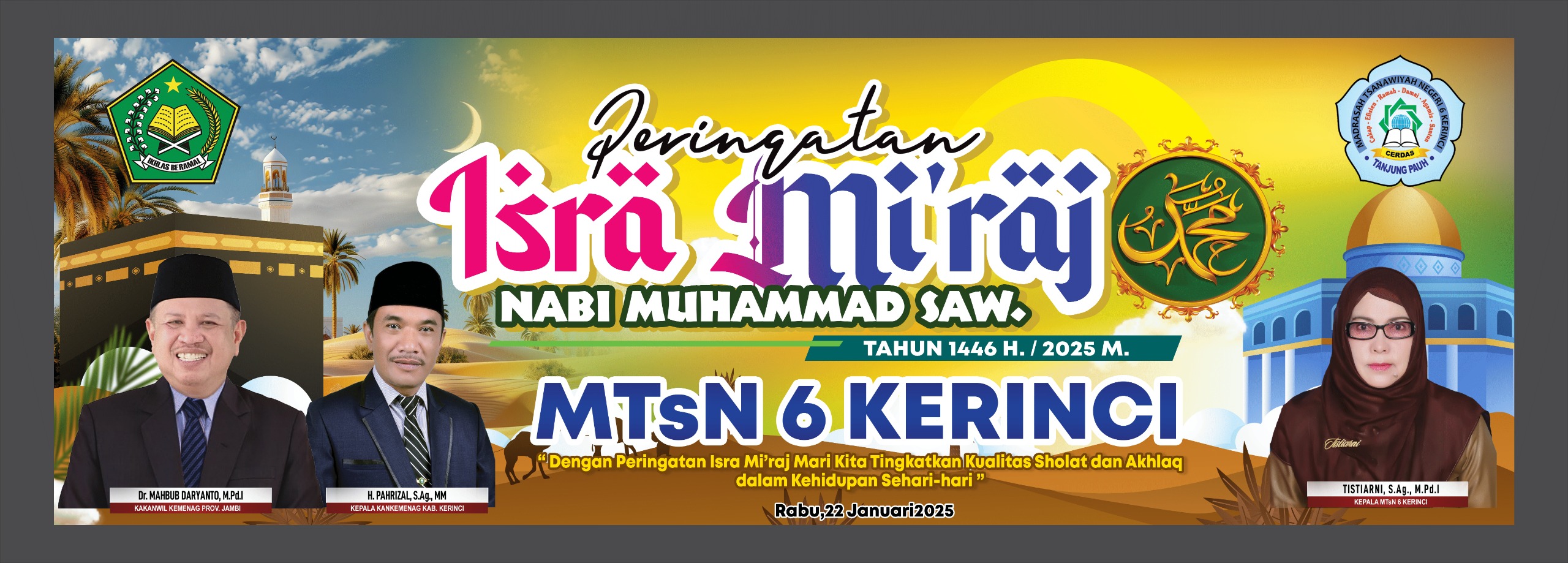 ``Semoga dengan peringatan Isra Mi`raj ini, kita semua dapat lebih disiplin dalam sholat dan semakin memperbaiki akhlak kita. Mari bersama-sama meneladani Nabi Muhammad SAW dalam kehidupan kita sehari-hari,`` ujar Kepala MTsN 6 Kerinci.
