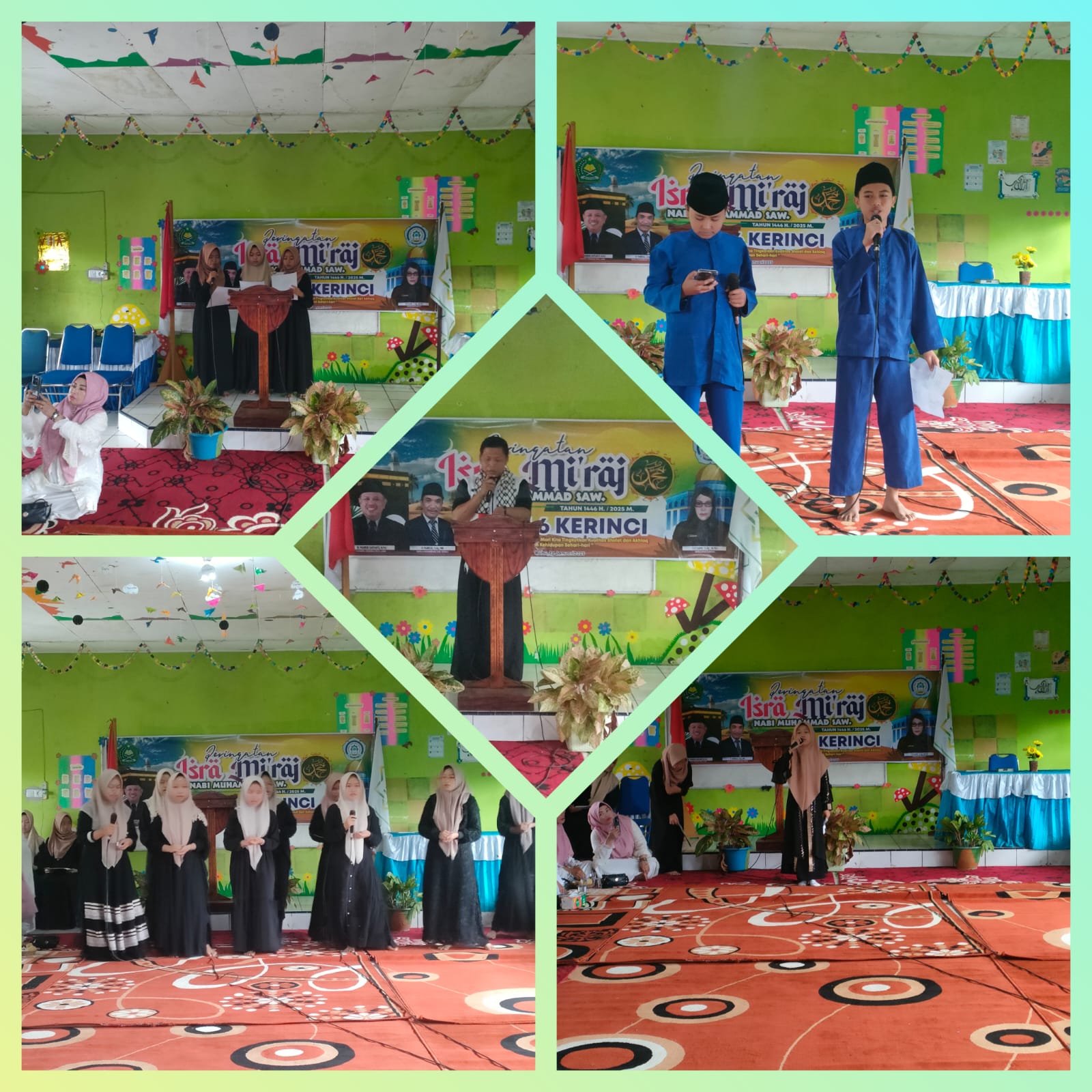 Acara dimulai pukul 09.00 WIB dengan lantunan ayat-ayat suci Al-Qur`an yang dibacakan oleh siswa, mengingatkan bahwa Al-Qur`an adalah mukjizat terbesar yang harus diimani dan diamalkan. Selanjutnya, acara diisi dengan berbagai penampilan menarik seperti nasyid, pembacaan puisi, dan pantun dari siswa-siswi yang menambah kemeriahan suasana.