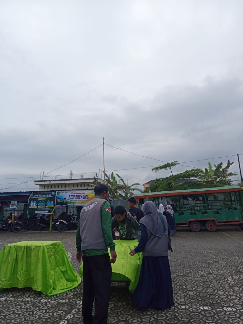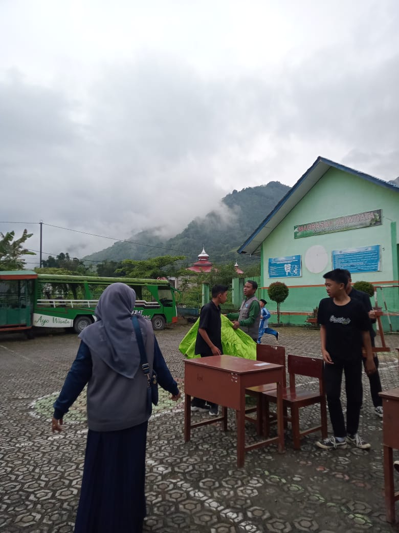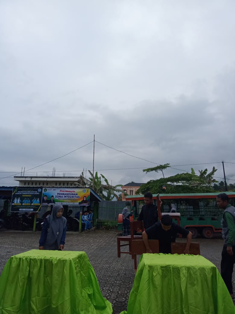 Kerinci (MTsN 6 Kerinci) – Panitia Pemilihan Ketua dan Wakil Ketua OSIM (Pilkatos) MTsN 6 Kerinci tahun 2025 menunjukkan kesigapan dan kerja sama tim yang solid dalam mempersiapkan lokasi pemilihan. Awalnya, pemilihan direncanakan dilaksanakan di dalam ruangan kelas IX D sebagai antisipasi cuaca hujan deras yang mengguyur pagi ini. Namun, setelah acara pembukaan Pilkatos selesai dilaksanakan di mushalla, hujan berangsur reda, membuka peluang untuk memindahkan lokasi pemilihan ke lapangan.