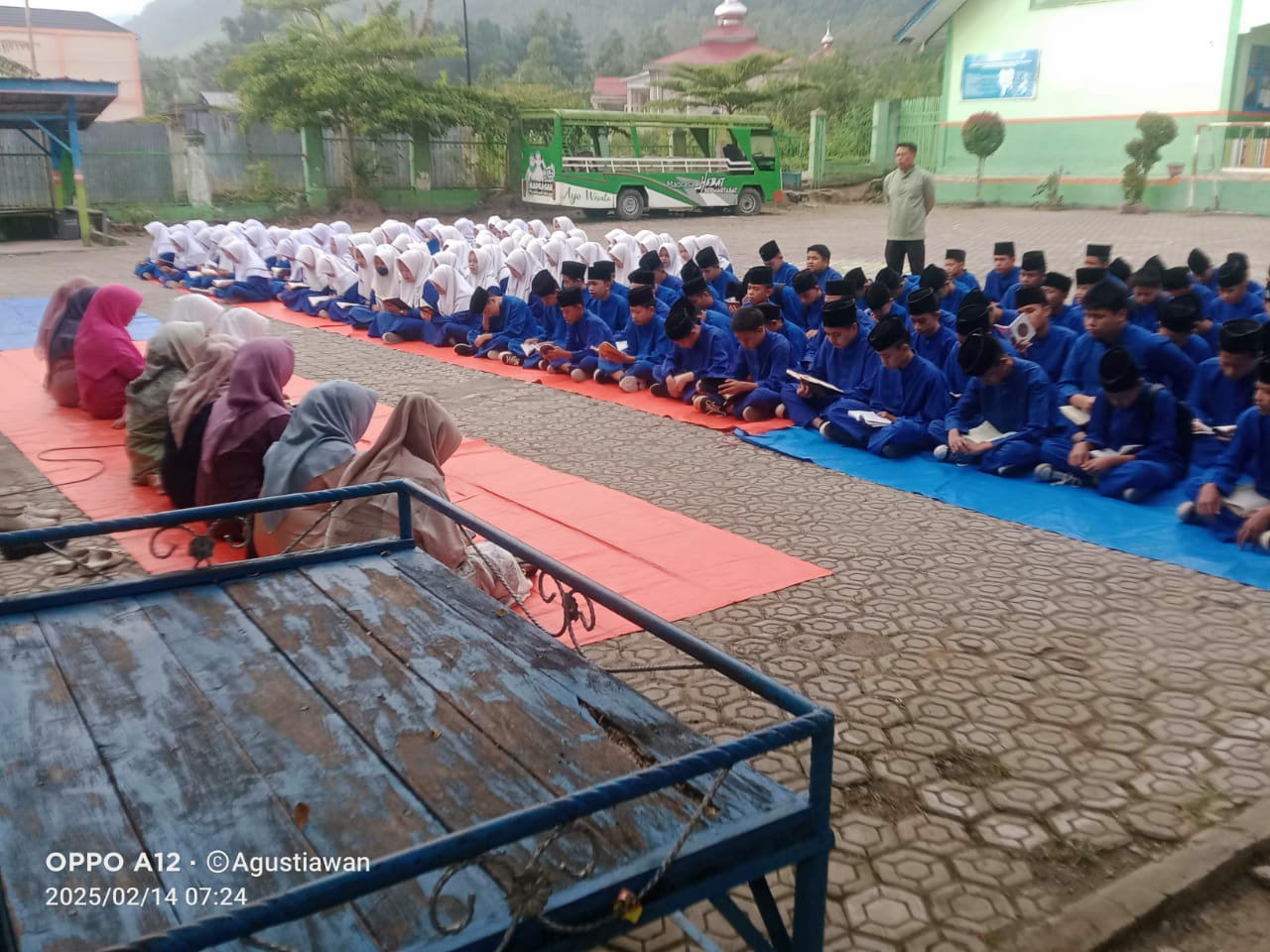 Kerinci (14/02/2025)…… Yasinan jum’at pagi menjadi agenda rutin bagi siswa Madrasah Tsanawiyah Negeri 6 Kerinci yang di agendakan rutin oleh Tim Humas dan Keislaman. Kepala Madrasah Hj. Tistiarni, S. Ag., M. Pd menyampaikan bahwa kegiatan ini rutin dilakukan setiap pagi jum’at. Setelah selesai membaca surat yasin kegiatan dilanjutkan dengan Berdo’a bersama yang dilakukan di Lapangan Madrasah. Pada Yasinan Rutin hari ini yang mendapat giliran adalah siswa kelas VIII B dengan petugas sebagai berikut Pemimpin Yasin adalah ananda CELSA dan SERA sedangkan Pemimpin Doa ialah ananda M. ADIL