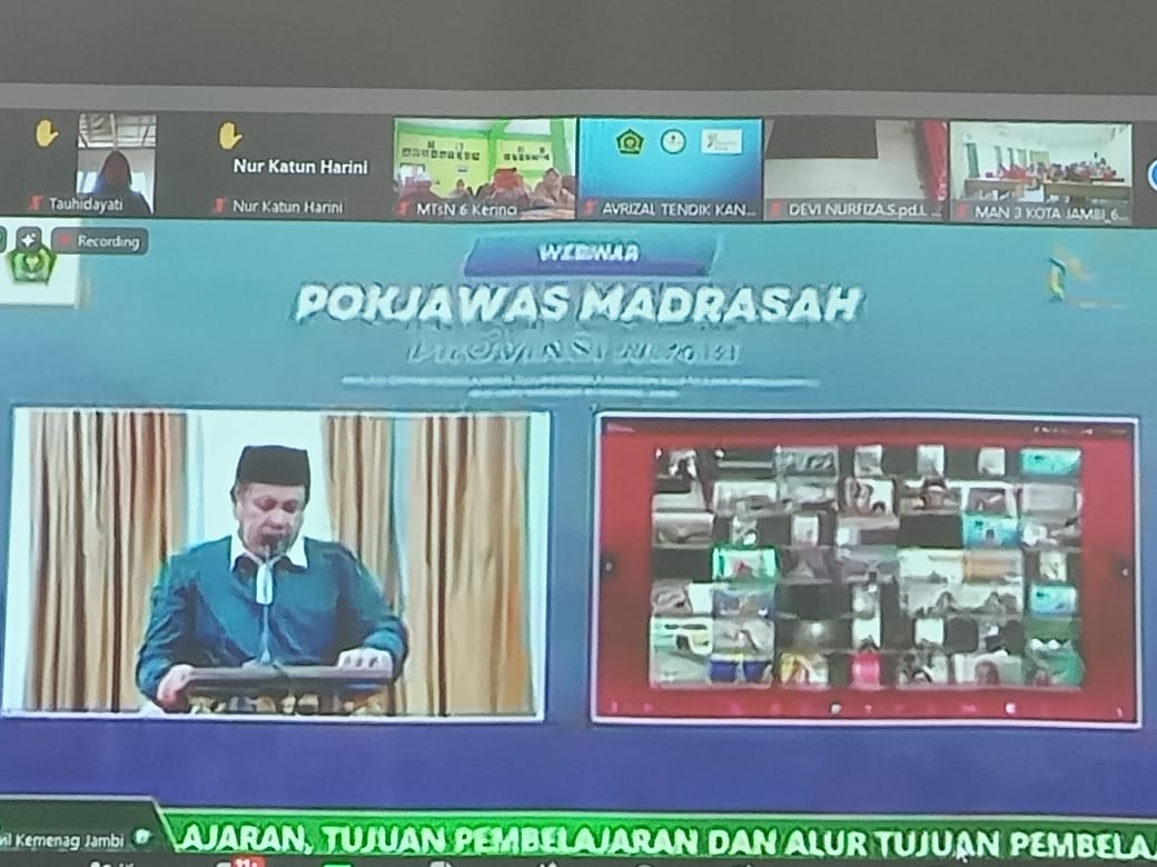 Webinar ini dibuka secara resmi oleh Dr. H. Mahbub Dariyanto, M.Pd.I, Kepala Kantor Kementerian Agama Provinsi Jambi. Dalam sambutannya, beliau menekankan pentingnya adaptasi terhadap kemajuan teknologi dalam dunia pendidikan. “Kemajuan teknologi membawa pengaruh besar dalam berbagai perubahan. Para pengelola pendidikan madrasah harus menyikapinya dengan baik, salah satunya dengan meningkatkan kompetensi untuk membangun masa depan anak bangsa,†ujarnya.