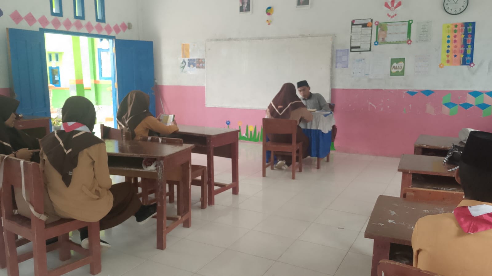 Setelah melaksanakan sholat Dhuha berjamaah di musholla madrasah, siswa kembali ke kelas masing-masing untuk melanjutkan tadarus. Wali kelas dan guru piket memastikan kegiatan berjalan lancar dan siswa tetap khusyuk dalam membaca Al-Qur’an. Selain itu, kegiatan ini juga menjadi sarana untuk mempererat hubungan antara guru dan siswa, serta menciptakan suasana pembelajaran yang religius dan kondusif.