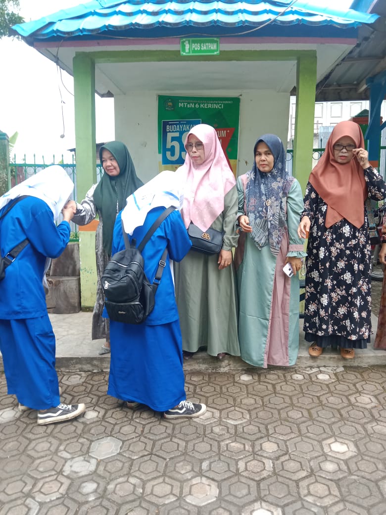 Kerinci (MTsN 6 Kerinci) – Sebagai lembaga pendidikan, MTsN 6 Kerinci tidak hanya fokus pada transfer ilmu pengetahuan, tetapi juga pada pembentukan karakter dan akhlak mulia siswa. Salah satu upaya yang dilakukan adalah dengan menerapkan budaya 5S (Senyum, Salam, Sapa, Sopan, dan Santun). Program ini menjadi fondasi dalam menciptakan lingkungan madrasah yang harmonis, ramah, dan penuh nilai-nilai positif.