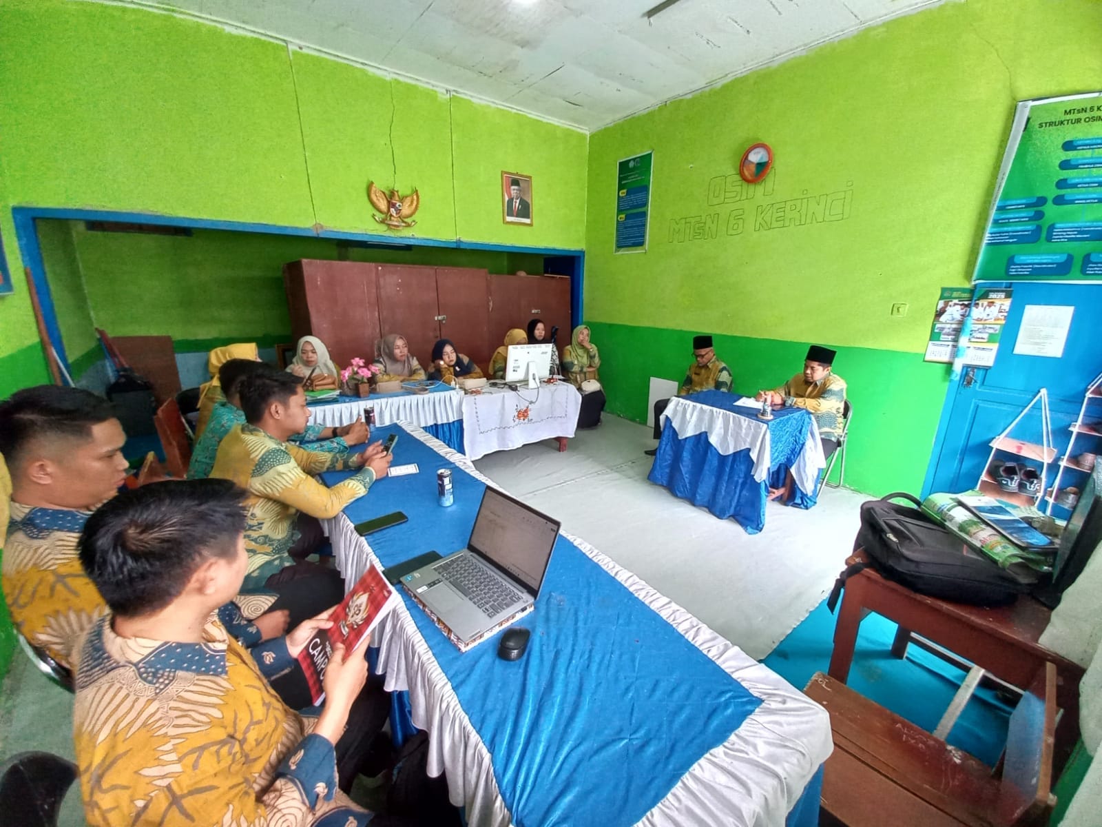 Kerinci (MTsN 6 Kerinci) – MTsN 6 Kerinci menggelar rapat koordinasi panitia Ujian Madrasah Tahun 2025 yang berlangsung di Ruangan Bimbingan Konseling (BK) pada Rabu, 09 April 2025 pukul 10.00 WIB. Rapat ini dipimpin langsung oleh Wakil Kepala Bidang Kurikulum sekaligus Ketua Pelaksana Ujian, Mhd. Khairan, M.Pd.I.