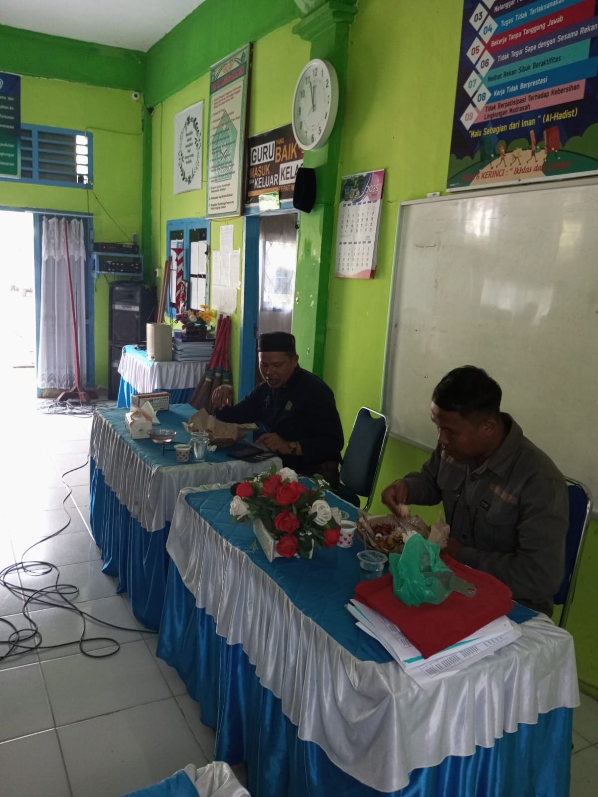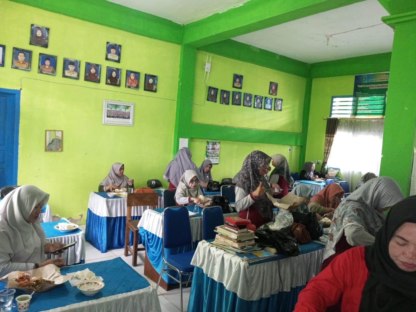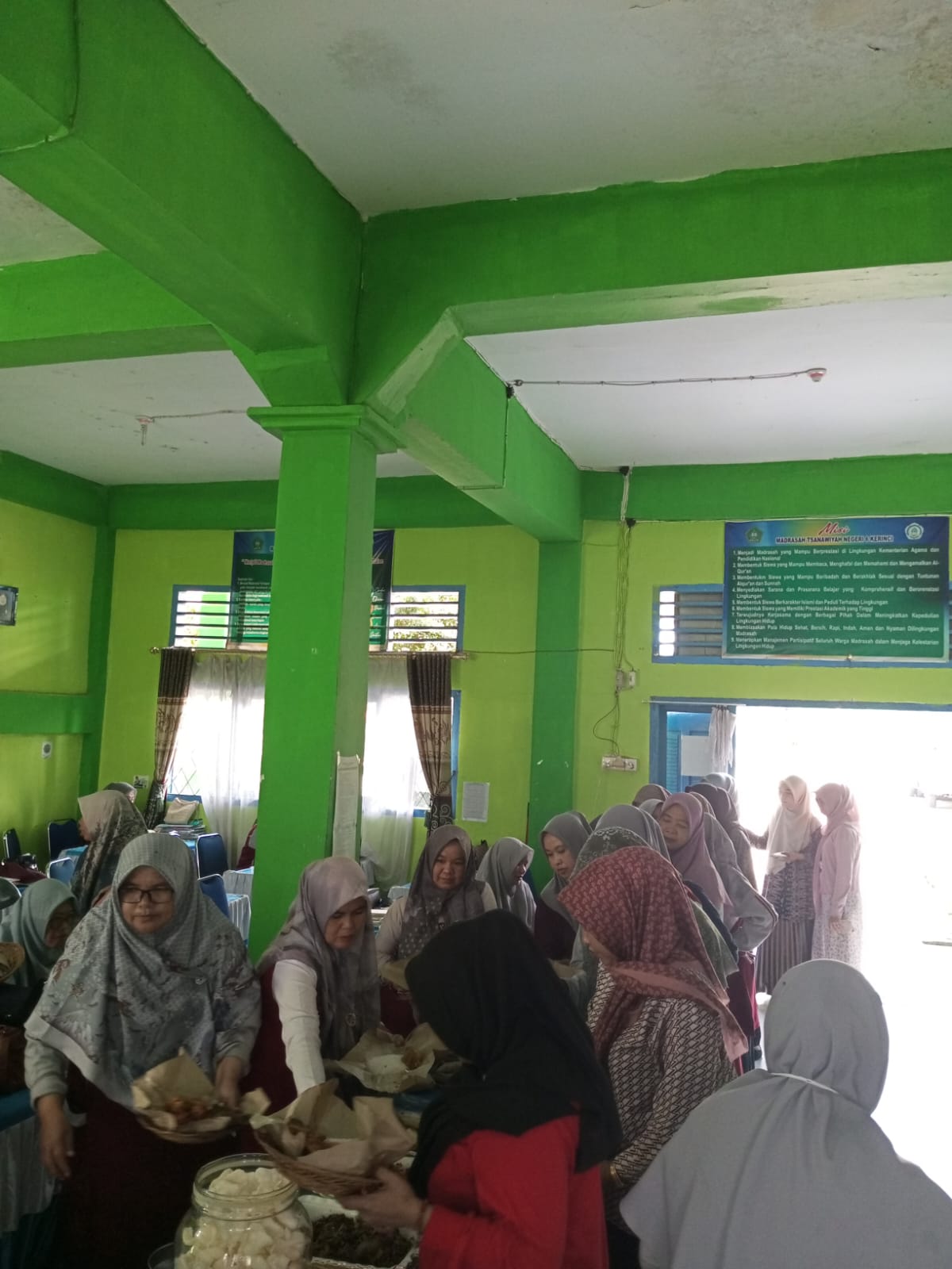 Kegiatan makan bersama dilaksanakan pada Sabtu, 13 April 2025, bertempat di Ruang Guru MTsN 6 Kerinci, sesaat setelah selesai acara arisan bulanan dan tausiah.