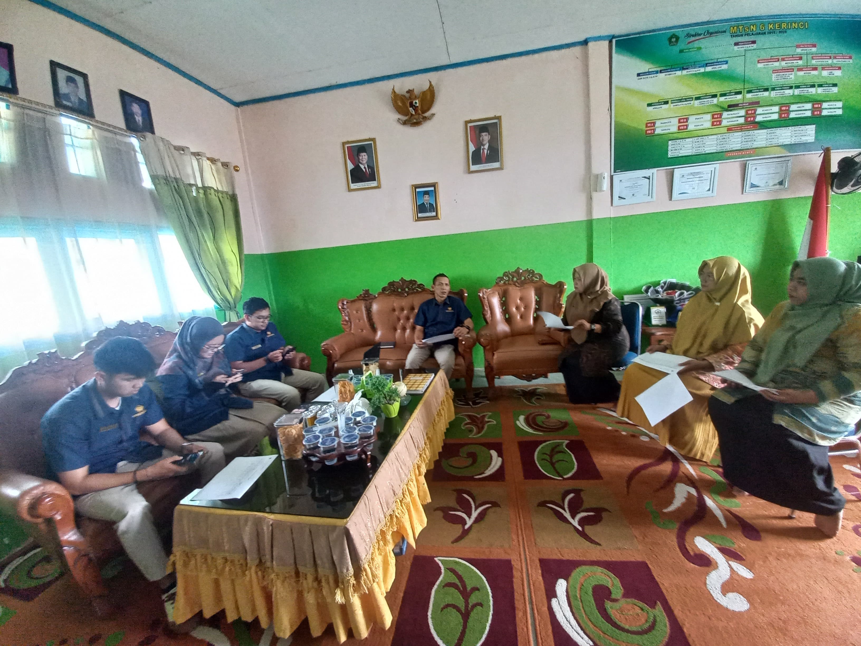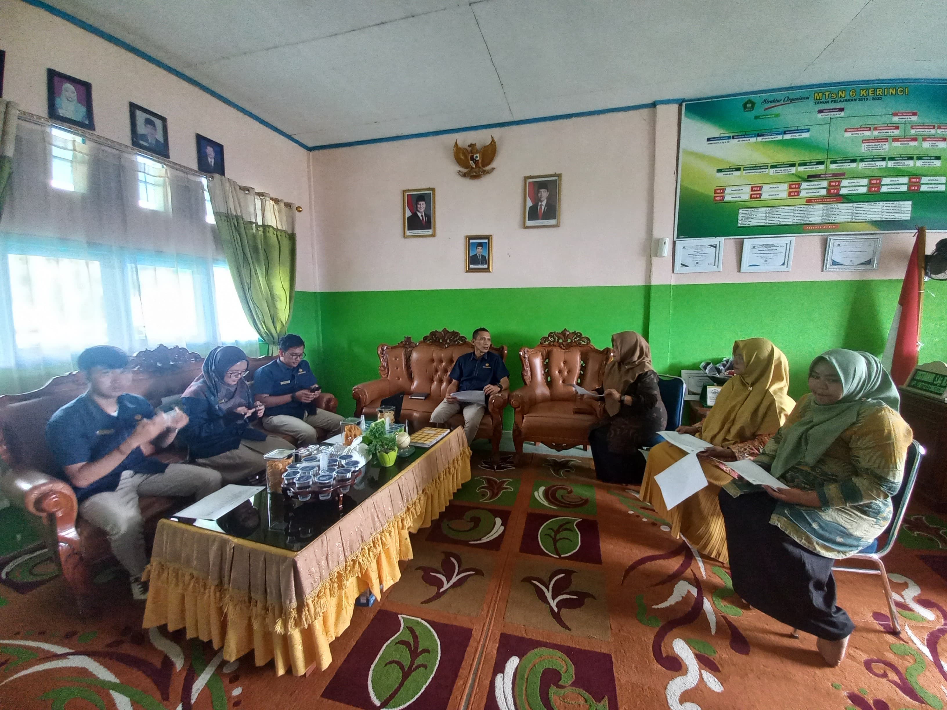 Kedatangan tim Monev disambut hangat oleh Kepala MTsN 6 Kerinci, Hj. Tistiarni, S.Ag., M.Pd.I, bertempat di ruangan kepala madrasah. Dalam kunjungan tersebut, turut hadir pula tim keuangan MTsN 6 Kerinci untuk berdiskusi langsung terkait proses administrasi, pencairan dana, serta pelaporan keuangan yang telah berjalan selama ini.