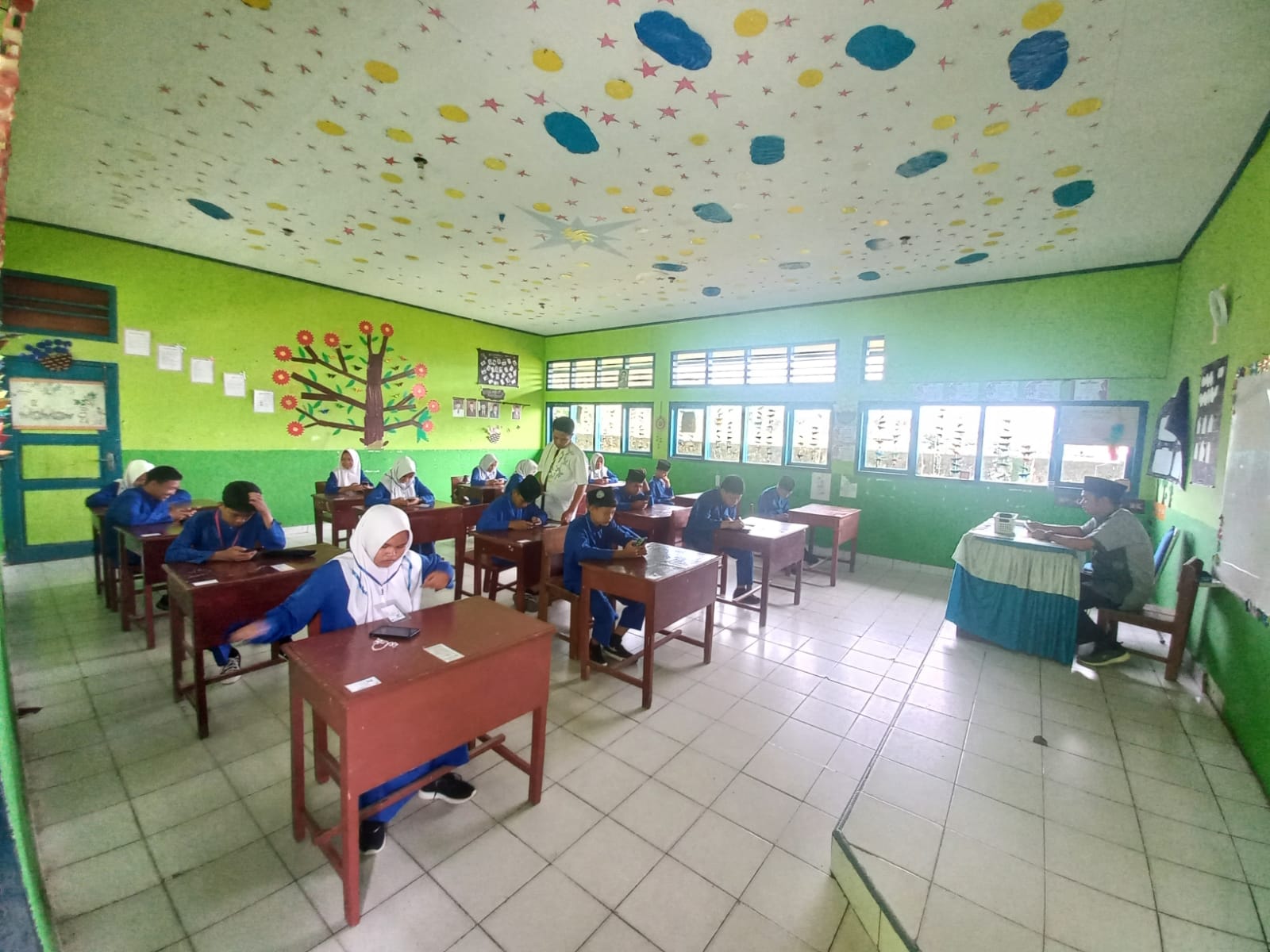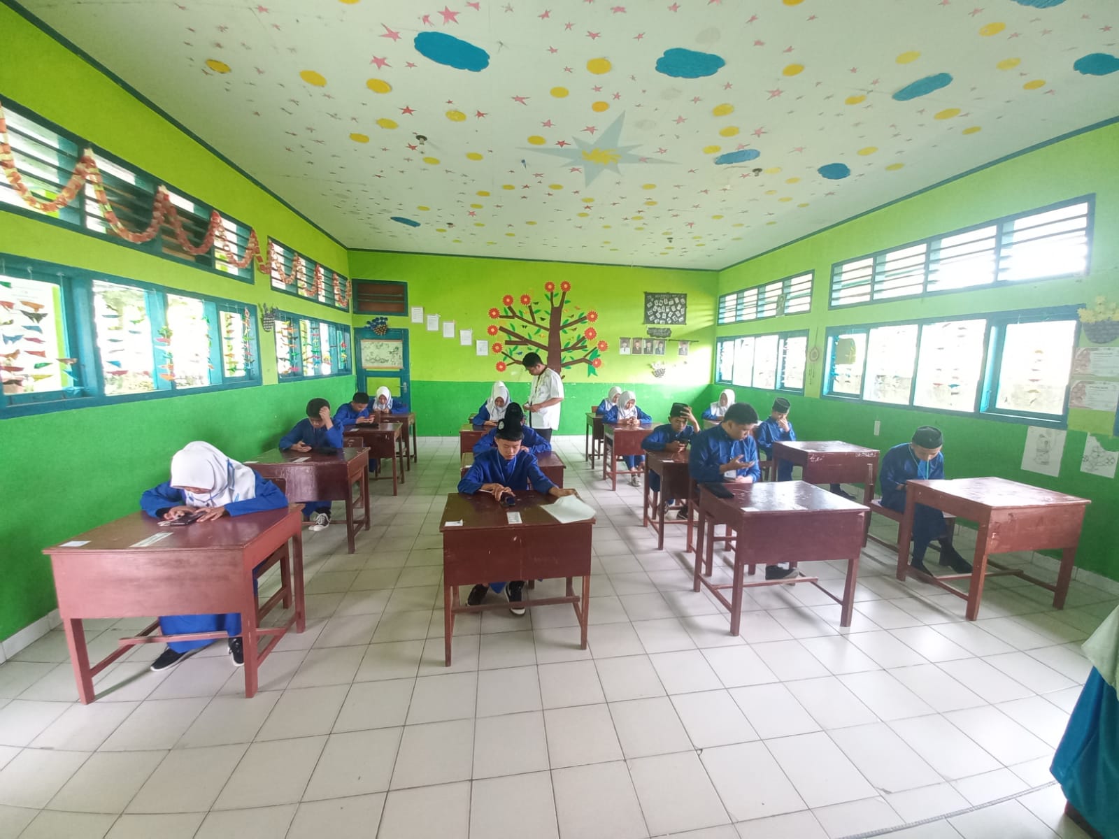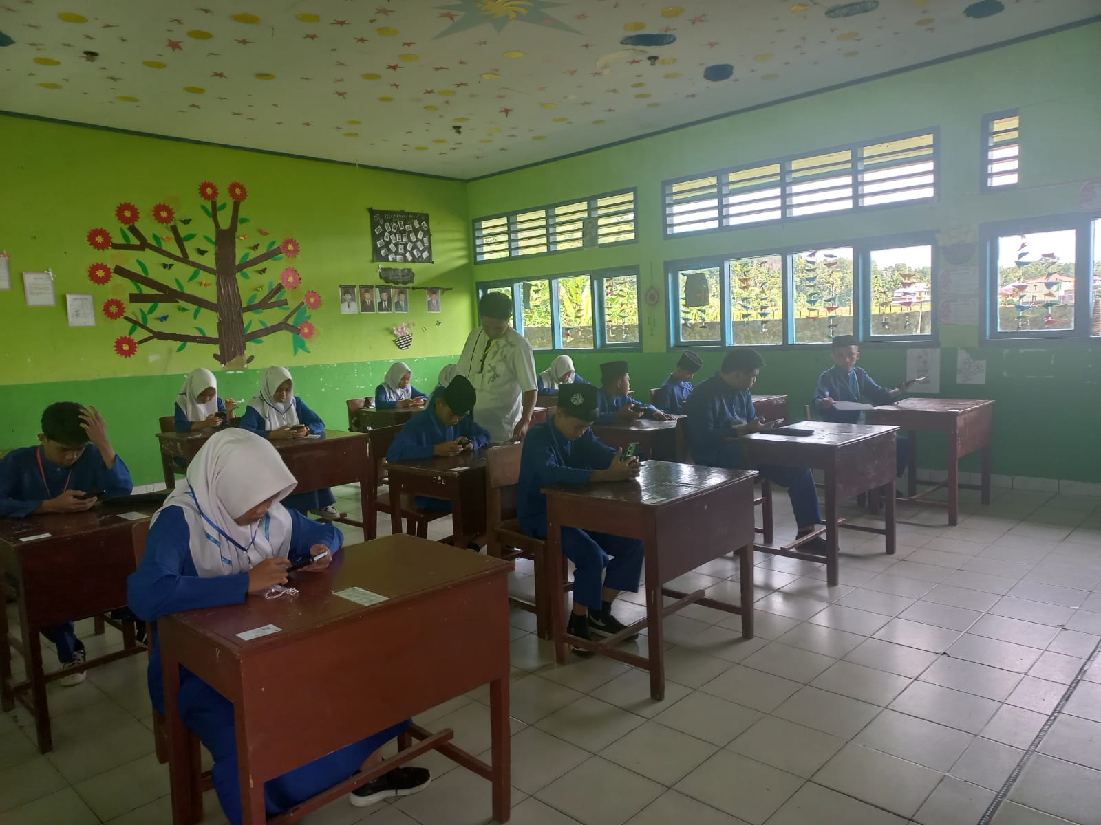 Tistiarni. S. Ag., M. Pd.I selaku kepala madrasah mengelilingi semua ruangan ujian dan memberikan dorongan semangat kepada para peserta asesmen akhir tersebut beliau berpesan kepada siswwa dan siswi dalam menjawab soal dengan mengerjakan soal yang paling murah terlebih dahulu jangan selalu terfokus pada satu soal saja bisa-bisa waktu habis tapi soal tidak bisa dikerjakan semua ungkap beliau. ……(Tim Website MTs N 6 Kerinci).