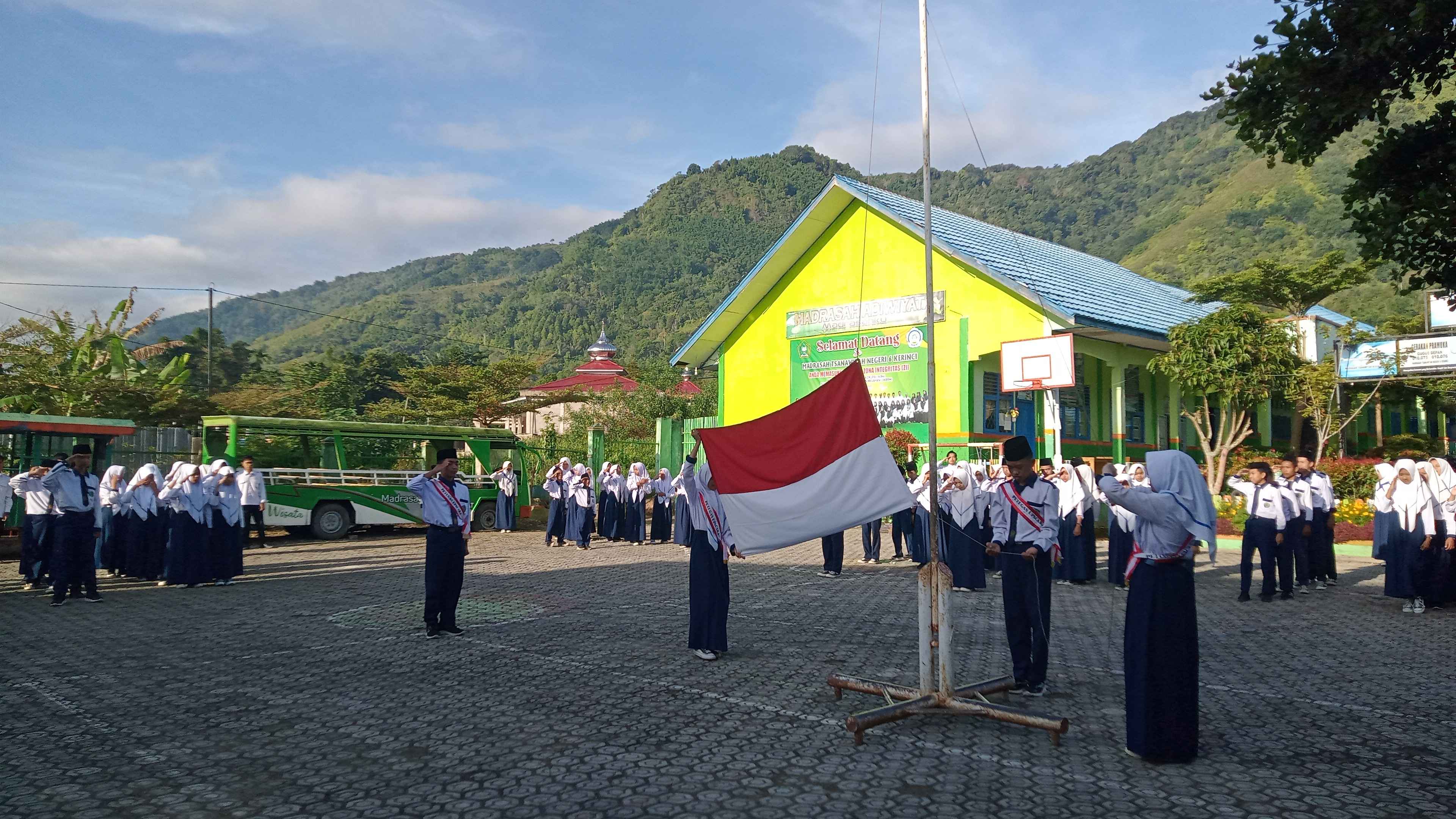 Kerinci ( MTsN 6 Kerinci) Rasa bahagia dan gembira menjadi kunci utama dalam menciptakan pengalaman belajar yang menyenangkan dan efektif, terutama bagi pelajar usia dini dan remaja. Penelitian terbaru dari sejumlah ahli pendidikan menunjukkan bahwa suasana hati yang positif meningkatkan daya ingat, fokus, serta motivasi belajar siswa. Ungkap Ibu Jalina, S.Pd dalam amanah pembina upacara dihadapan semua siswa pada hari ini, Senin 05 Mei 2025.