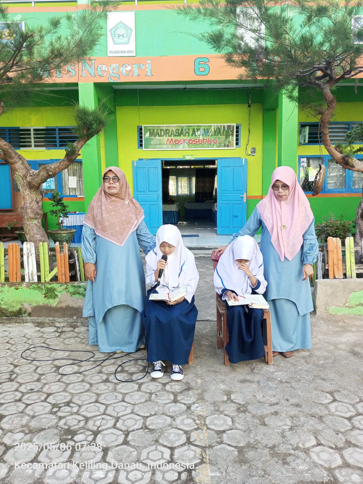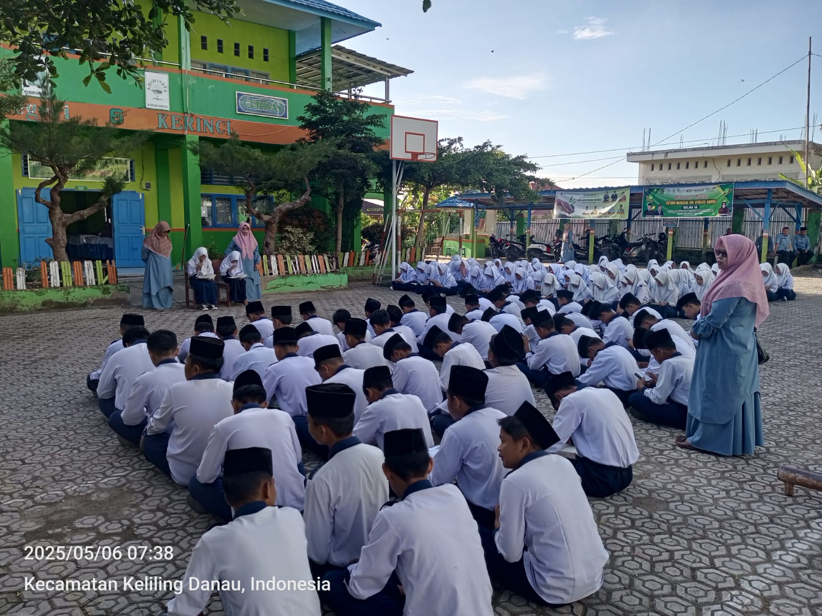 Kerinci (06/05/2025)…Seluruh siswa MTs Negeri 6 Kerinci membiasakan membaca Alquran secara rutin sebelum kegiatan pembelajaran berlangsung di dalam kelas. Kegiatan tilawah ini dipimpin oleh Siswa dan siswi Kelas VII C. yang mendapatkan tugas sesuai jadwal yang telah di tentukan. Pemimpin Baca Al-Quran hari ini ialah Liyani Putri dan Fazana Auni sedangkan untuk Pembaca Doa ialah M. Zaki