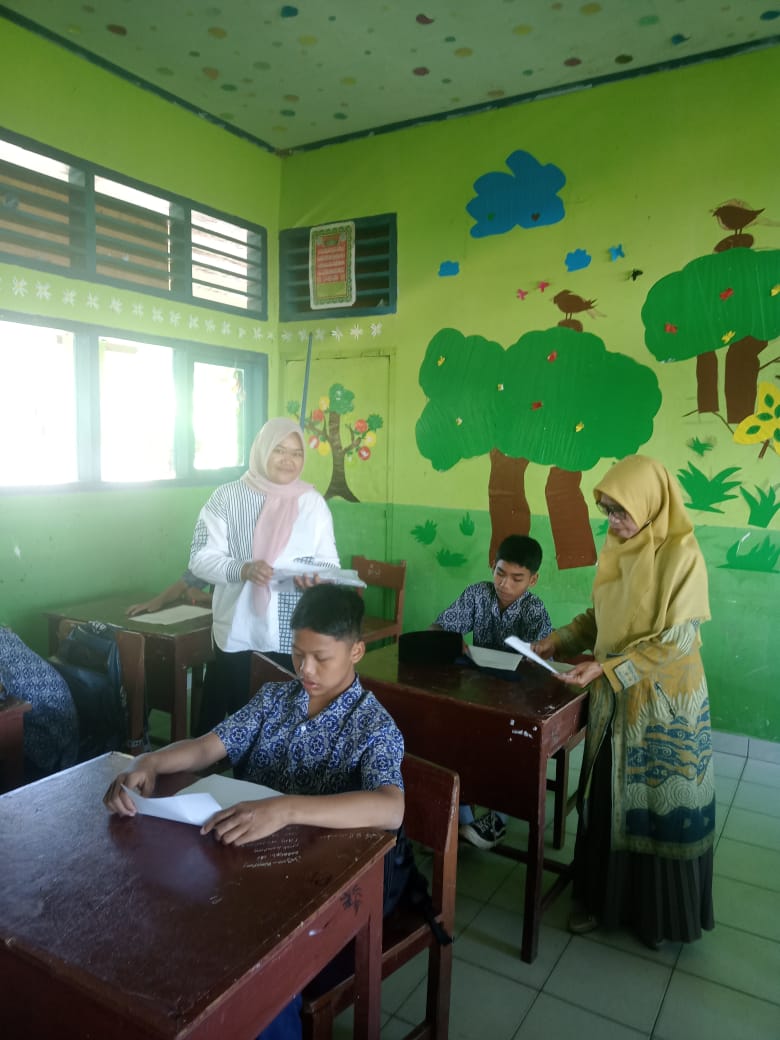 Kegiatan skrining dilaksanakan secara tertib di ruang kelas yang telah disiapkan oleh pihak madrasah. Siswa-siswi mengikuti arahan dengan baik dan mengisi angket secara jujur dan mandiri.