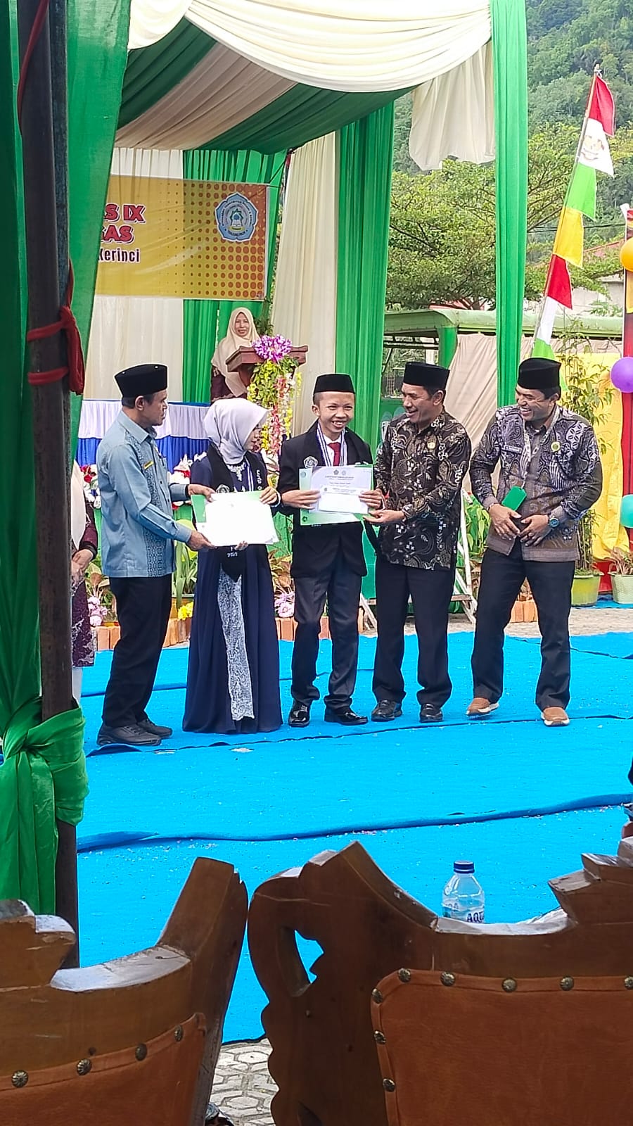 Penghargaan prestisius ini diberikan kepada dua siswa terbaik, yakni Afiq Aulia Putra dan Ulfa Septi Mulyani, yang dinilai unggul dalam aspek akademik maupun non-akademik. Keduanya berhasil meraih predikat siswa berprestasi setelah melalui berbagai penilaian dan pencapaian selama tiga tahun belajar di MTsN 6 Kerinci.