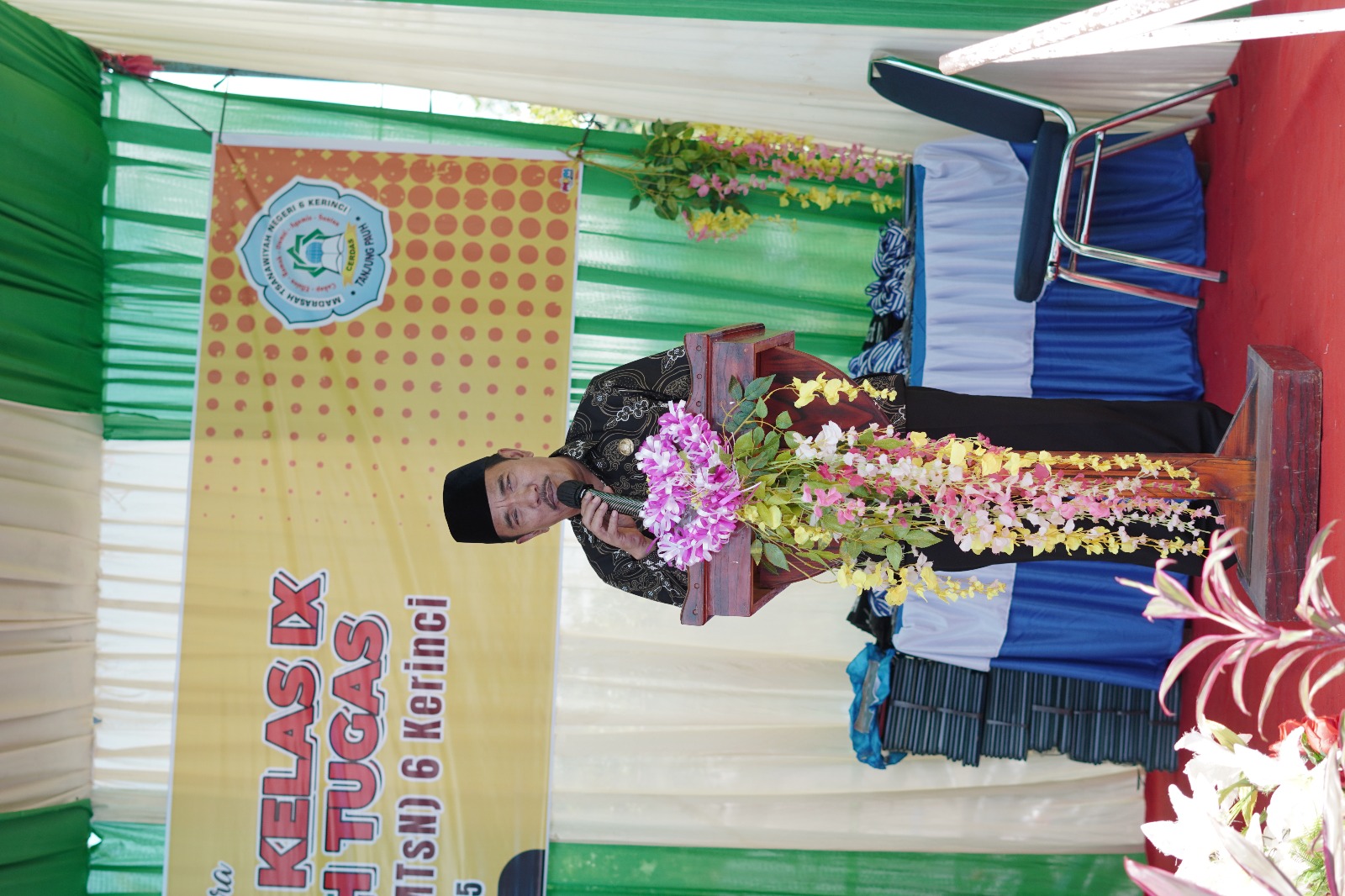 Dalam sambutannya, H. Pahrizal menyampaikan bahwa pendidikan di madrasah saja tidaklah cukup untuk membentuk karakter dan masa depan siswa. Peran aktif dan pendidikan dari lingkungan keluarga memiliki kontribusi besar dalam membentuk kepribadian, akhlak, dan kesuksesan anak. “Setelah tamat dari MTsN 6 Kerinci, tujuh tahun ke depan, mungkin kalian akan kembali sebagai polisi, tentara, guru, dokter, dan profesi membanggakan lainnya. Itu menjadi kebanggaan bagi diri kalian, orang tua, dan guru,†ujarnya.