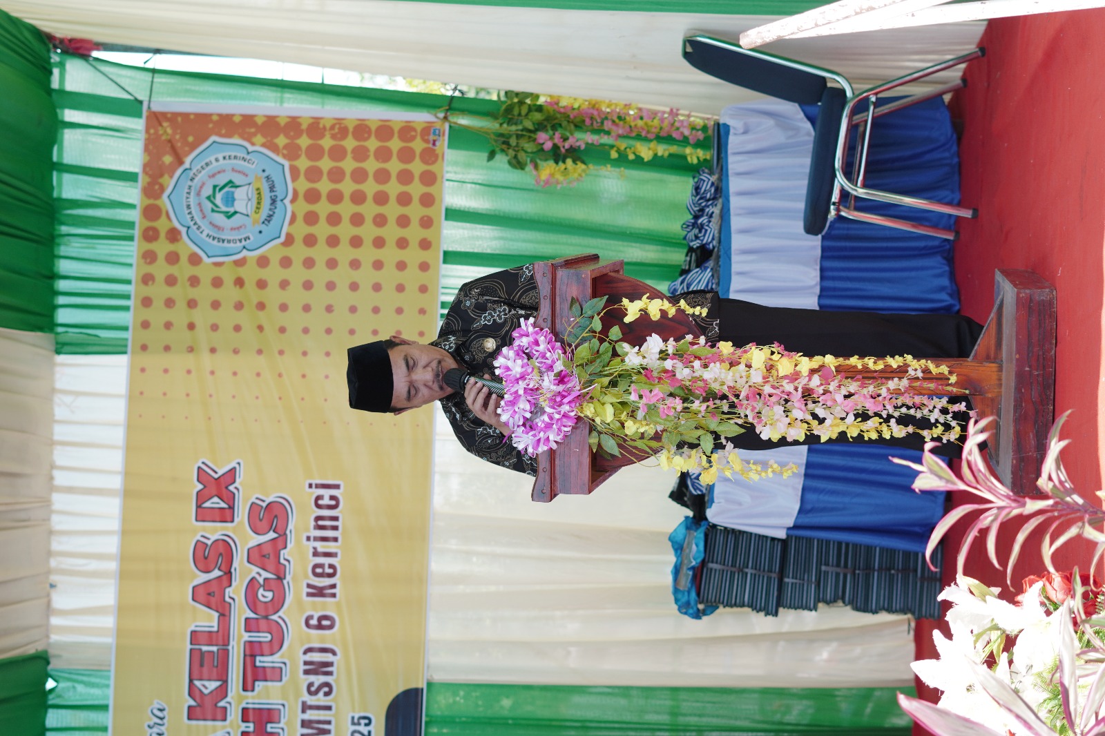 Kerinci (MTsN 6 Kerinci) – Dalam momentum penuh haru dan kebanggaan, acara perpisahan dan pelepasan siswa kelas IX MTsN 6 Kerinci Tahun Pelajaran 2024/2025 diwarnai dengan arahan bermakna dari Kepala Kantor Kementerian Agama Kabupaten Kerinci, H. Pahrizal, S.Ag., MM. Acara yang digelar di lapangan madrasah ini dihadiri oleh jajaran pejabat Kemenag, kepala madrasah, guru, wali murid, serta seluruh siswa kelas IX.