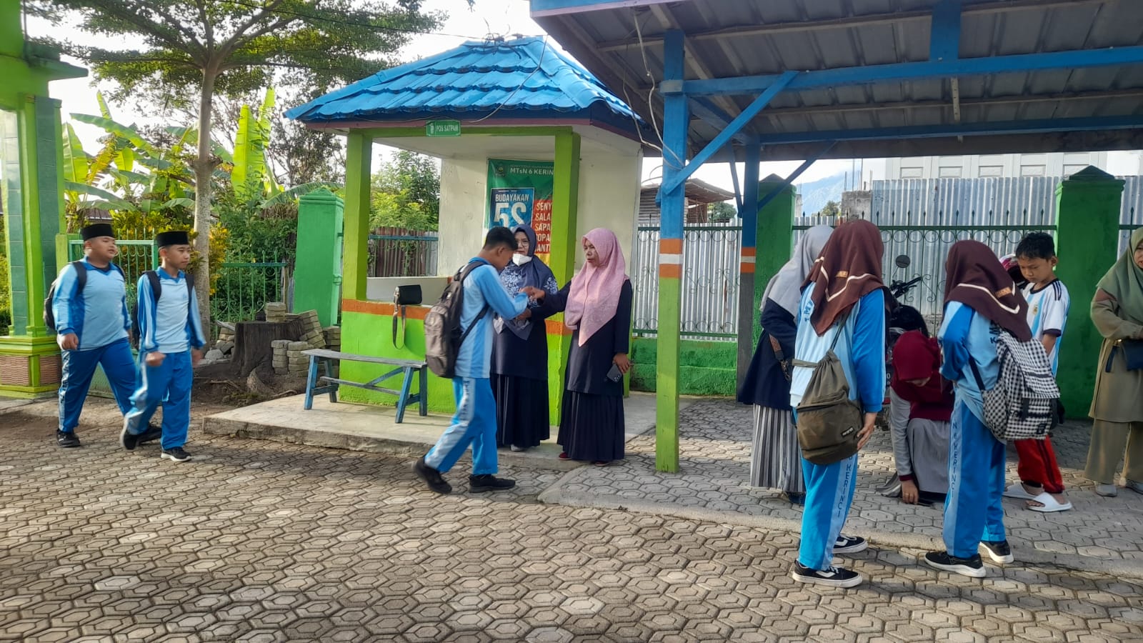 Suasana Pagi Penuh Kehangatan, Guru Piket Sambut Siswa di Gerbang MTsN 6 Kerinci dengan 5S