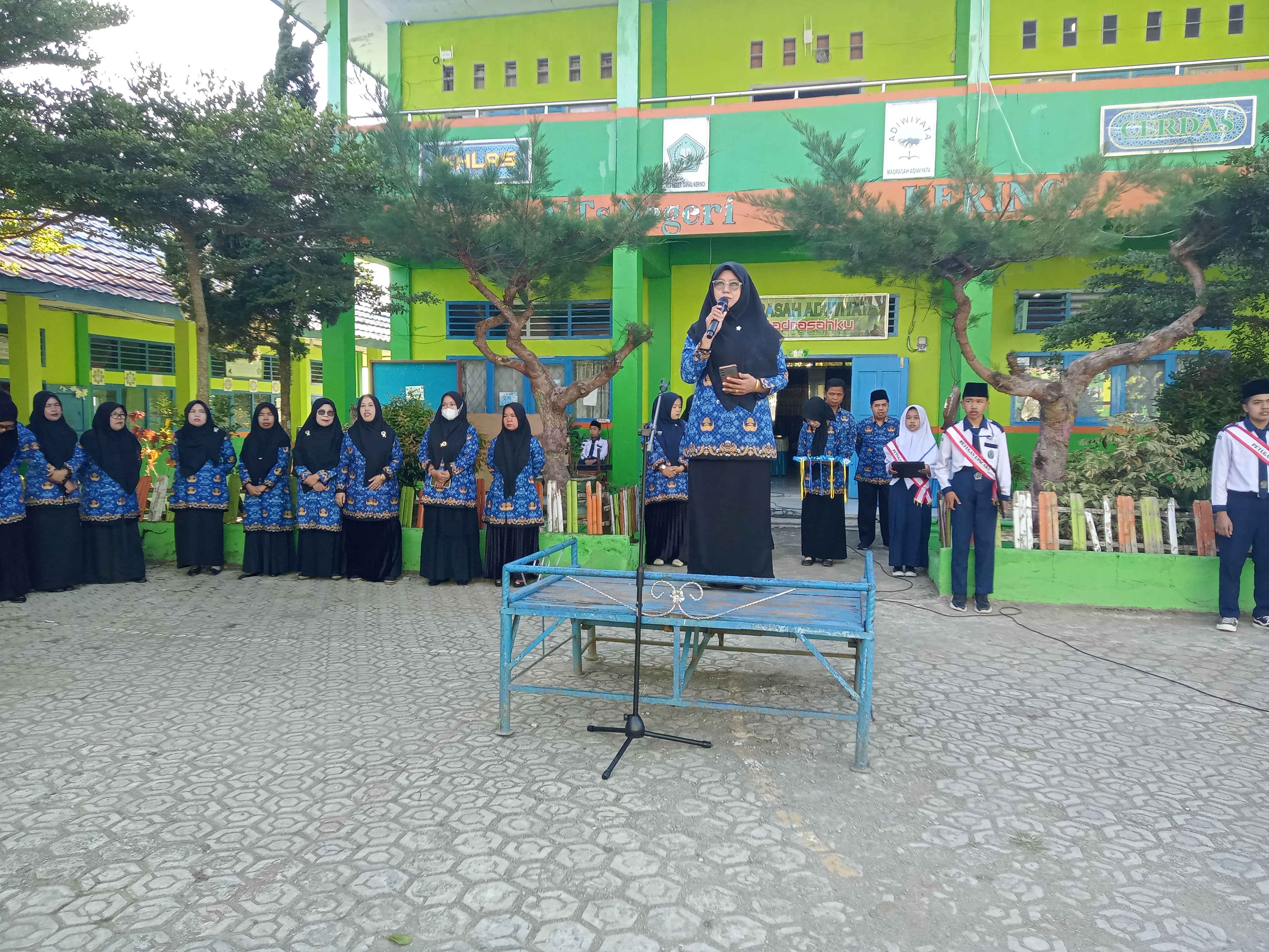 Kerinci (MTsN 6 Kerinci), MTsN 6 Kerinci resmi memulai pelaksanaan Asesmen Sumatif Akhir Tahun (ASAT) Tahun Pelajaran 2024/2025 pada hari ini Senin, 2 Juni 2025. Kegiatan ini dibuka secara resmi oleh Kepala Urusan Tata Usaha (Kaur TU) MTsN 6 Kerinci, Ibu Yulinarti, M.HI dalam sebuah apel pagi yang diikuti oleh seluruh peserta didik kelas 7 dan 8 serta majlis guru dan pegawai.