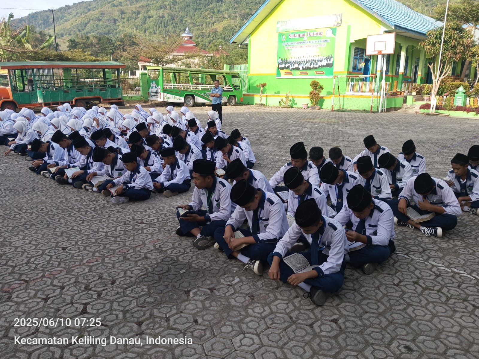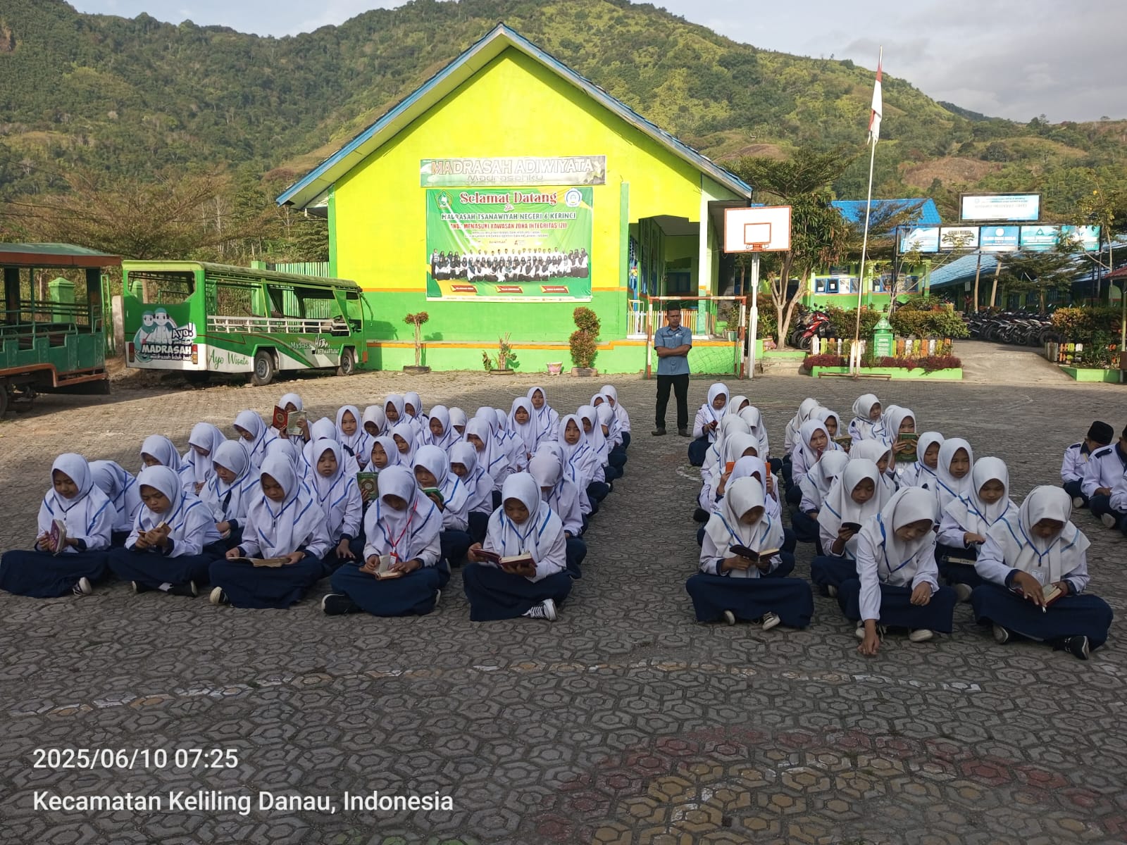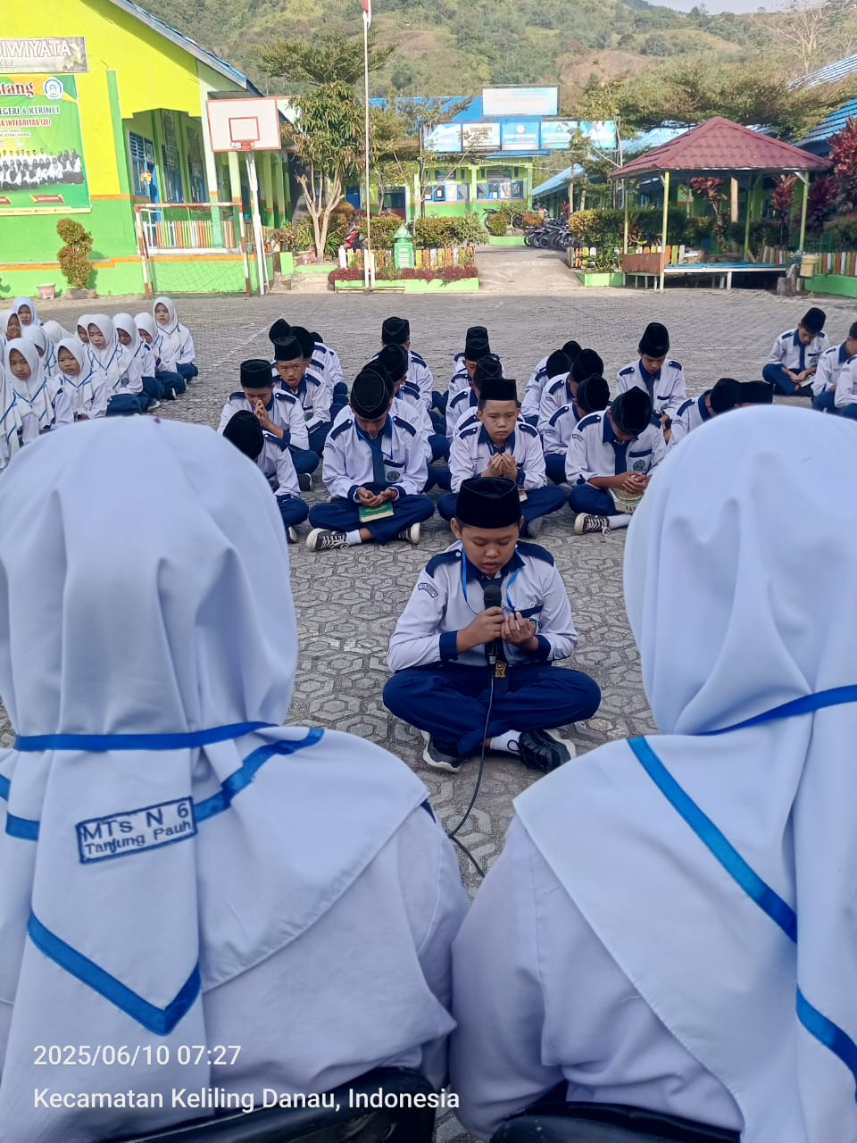 Kerinci (10/06/2025)…Seluruh siswa MTs Negeri 6 Kerinci membiasakan membaca Alquran secara rutin sebelum kegiatan pembelajaran berlangsung di dalam kelas. Kegiatan tilawah ini dipimpin oleh Siswa dan siswi Kelas VII A dengan Wali Kelas FEBRITA MELATI SETIAWAN, S. Pd yang mendapatkan tugas sesuai jadwal yang telah di tentukan. Pemimpin Baca Al-Quran hari ini ialah KHANZA ARRAFIFA dan NAFAH KAZUE AQILA sedangkan untuk Pembaca Doa ialah FARIS HADI RAHMAN