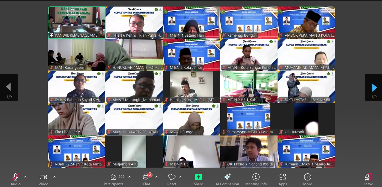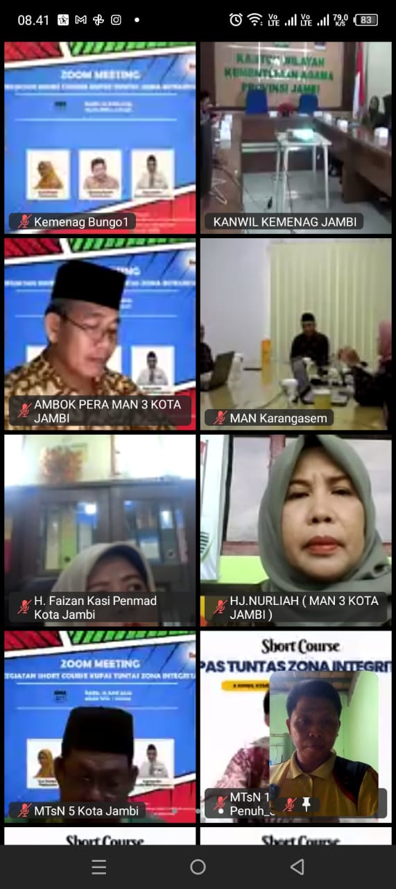 Kerinci (MTsN 6 Kerinci) – Dalam rangka memperkuat komitmen dan pemahaman terhadap pembangunan Zona Integritas (ZI) menuju Wilayah Bebas dari Korupsi (WBK), Tim ZI MTsN 6 Kerinci mengikuti kegiatan Short Course bertajuk “Kupas Tuntas Zona Integritas†yang dilaksanakan secara daring melalui Zoom Meeting pada Rabu, 18 Juni 2025 pukul 08.00 WIB.