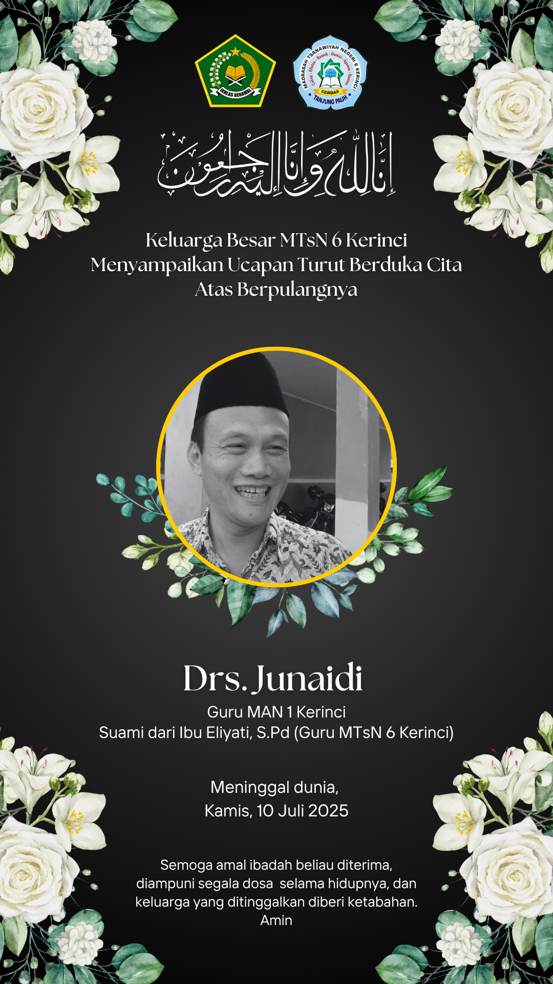Kerinci (MTsN 6 Kerinci) – Sebagai wujud kepedulian dan solidaritas, perwakilan siswa kelas IX C bersama pengurus OSIM MTsN 6 Kerinci melaksanakan kegiatan sosial dan takziah ke rumah duka Ibu Eliyati, S.Pd, salah satu guru di madrasah yang sedang berduka atas wafatnya suami tercinta, Drs. Junaidi pada Kamis, 10 Juli 2025.