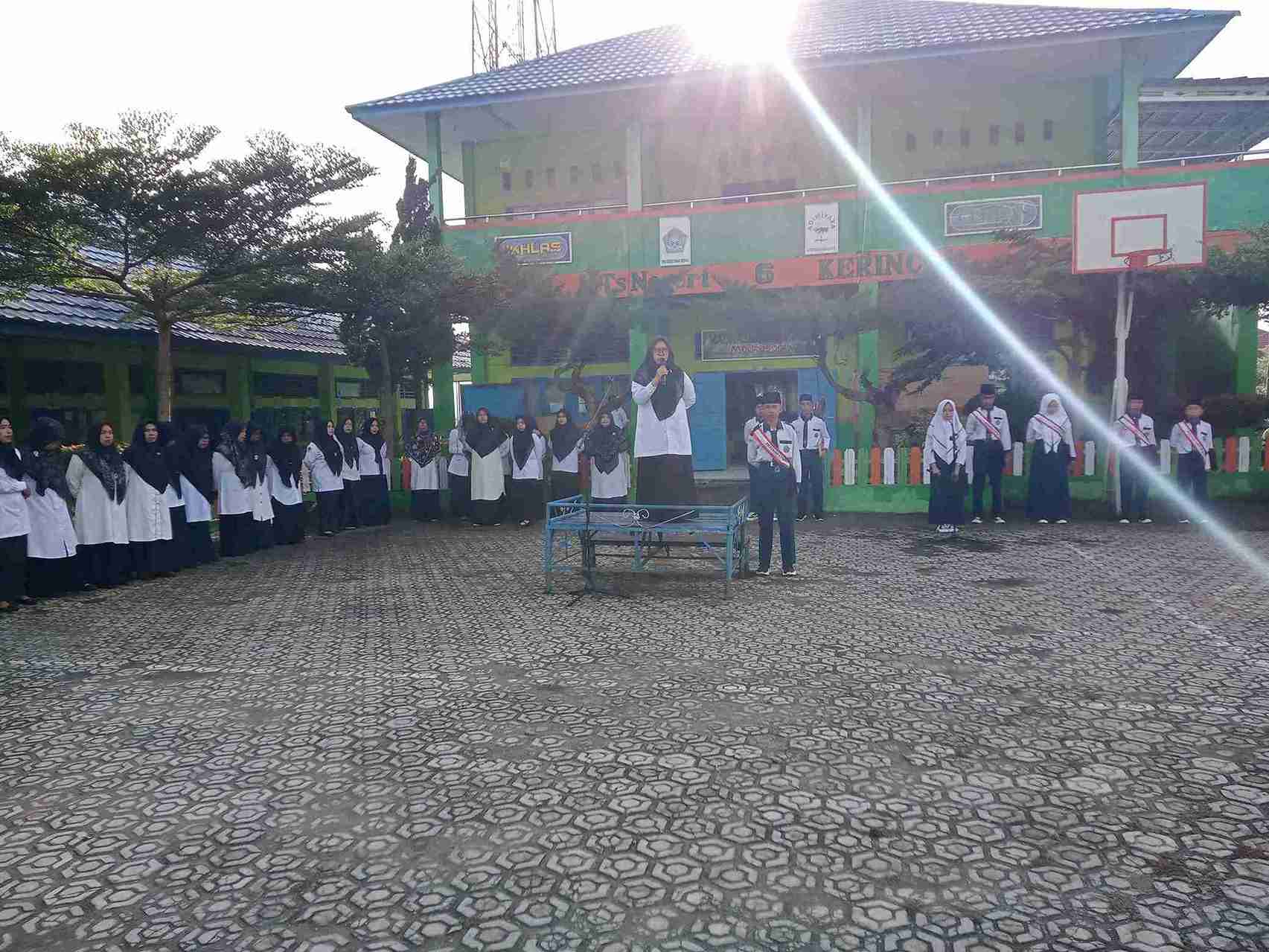 Kerinci (MTsN 6 Kerinci), MTsN 6 Kerinci menggelar upacara bendera perdana di awal Tahun Pelajaran 2025/2026 pada Senin pagi 14 Juli 2025 dengan penuh khidmat dan semangat. Upacara yang berlangsung di halaman madrasah ini diikuti oleh seluruh siswa, majlis guru, dan tenaga kependidikan sebagai tanda dimulainya aktivitas belajar-mengajar secara resmi.
