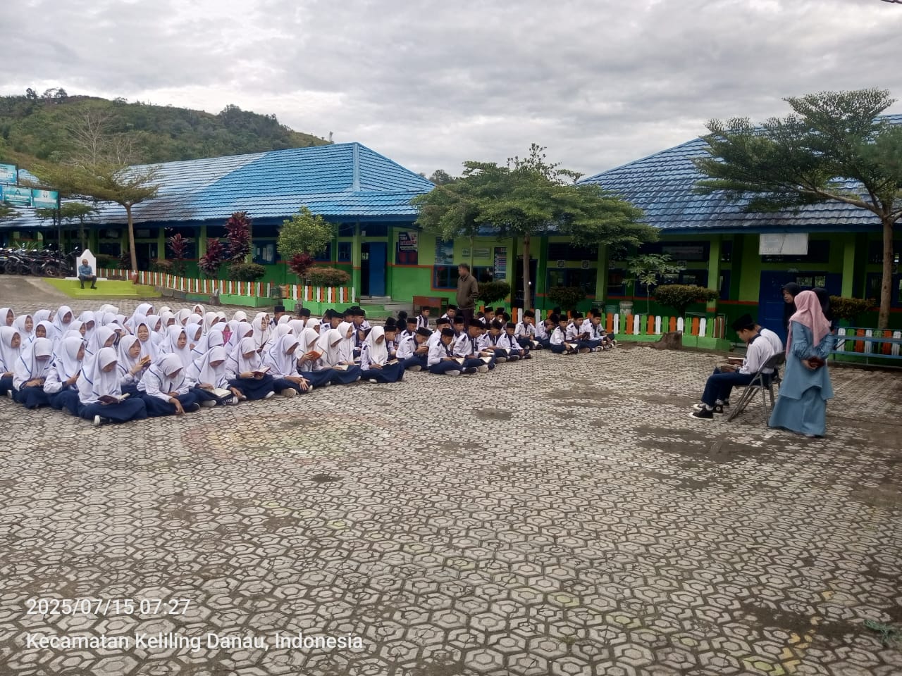 Kerinci (15/07/2025)…Seluruh siswa MTs Negeri 6 Kerinci membiasakan membaca Alquran secara rutin sebelum kegiatan pembelajaran berlangsung di dalam kelas. Kegiatan tilawah ini dipimpin oleh Siswa dan siswi Kelas IX A yg dikomandoi oleh Ibu Elvi Satria, S. Pd yang mendapatkan tugas sesuai jadwal yang telah di tentukan. Pemimpin Baca Al-Quran hari ini ialah MUHAMMAD Azam Ramadhan sedangkan untuk Pembaca Doa ialah RAFA FERZHA ALAUNA
