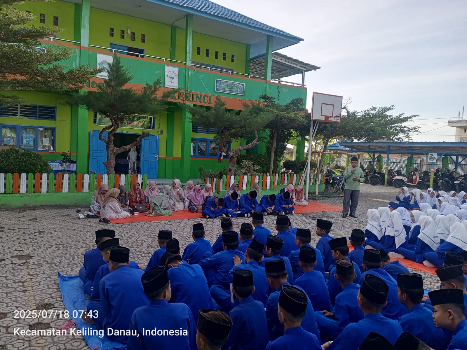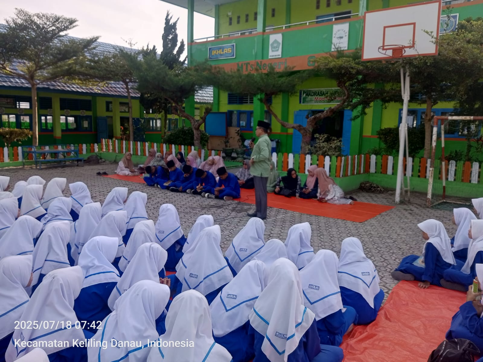 Kerinci (18/07/2025)…..Suasana Madrasah Tsanawiyah Negeri (MTsN) 6 Kerinci pagi ini terasa lebih khidmat dan penuh semangat. Segenap siswa, guru, dan tenaga kependidikan mengikuti kegiatan tausiyah yang disampaikan oleh Ustadz H. Afrial, S.Pd. dengan tema “Tanggung Jawab dan Kerja Samaâ€. Kegiatan ini dilaksanakan di halaman madrasah usai pelaksanaan Yasinan rutin.