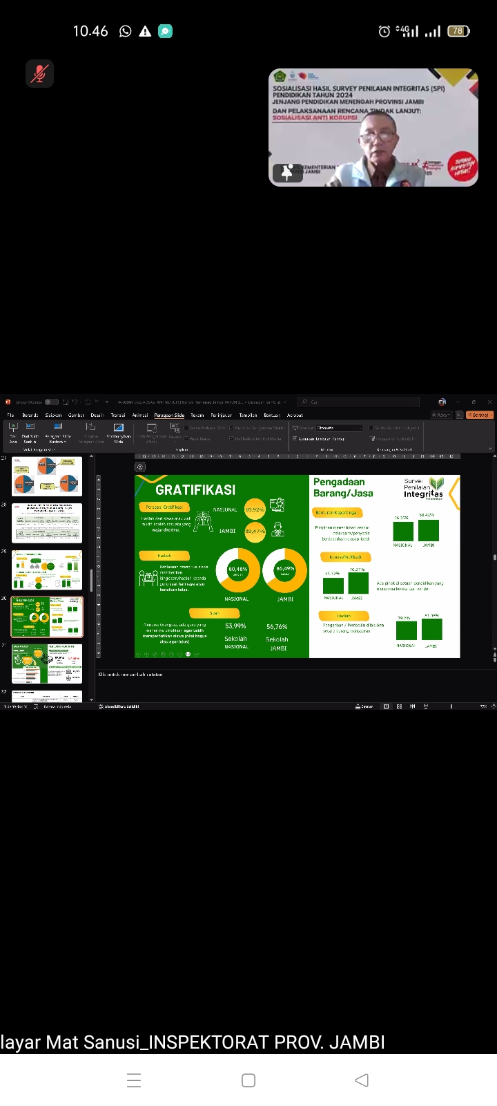 Kegiatan sosialisasi yang dilaksanakan secara daring tersebut diikuti oleh Tim Zona Integritas, Pendidik dan Tenaga Kependidikan MTsN 6 Kerinci. Dalam acara tersebut, disampaikan hasil survei penilaian integritas yang mencerminkan tingkat kepatuhan dan transparansi lembaga terhadap prinsip-prinsip tata kelola yang baik.