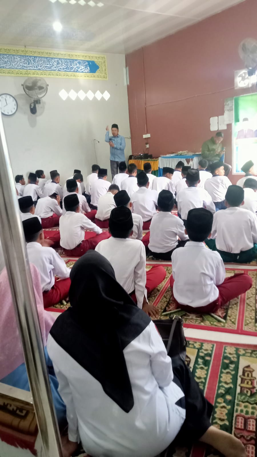 Setelah salat, kami biasanya mendapatkan tausiyah singkat dari guru. Itu sangat bermanfaat untuk bekal kami sehari-hari, ujarnya.