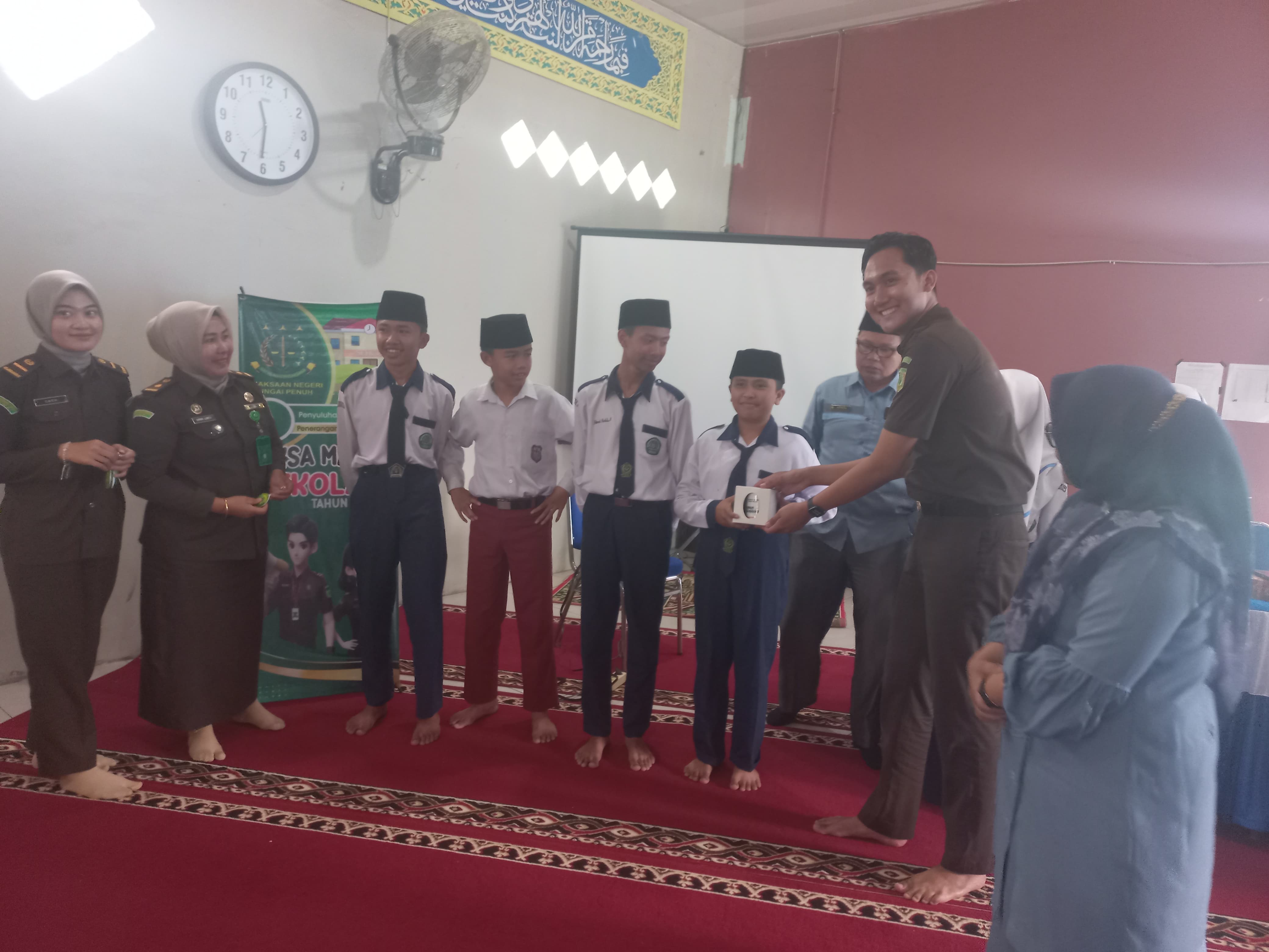 Kerinci (05/08/2025)…..MTs Negeri 6 Kerinci menggelar kegiatan penyuluhan hukum pada Selasa, 5 Agustus 2025. Kegiatan ini menghadirkan narasumber dari Kejaksaan Negeri Sungai Penuh yang memberikan pengarahan penting kepada seluruh siswa terkait bahaya bullying, narkoba, dan minuman keras.