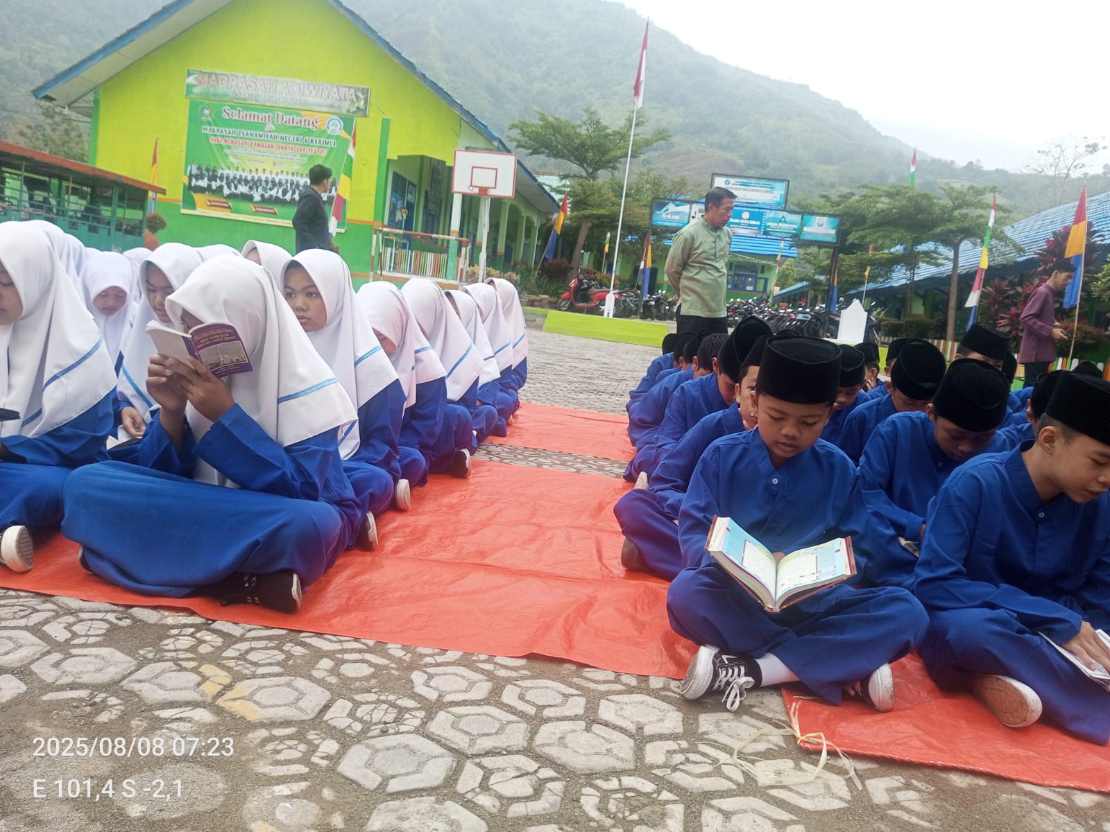 Kerinci (08/08/2025)……Kegiatan Yasinan mingguan di MTs Negeri 6 Kerinci kembali berlangsung khidmat pada Jumat (8/8/2025) di Lapangan madrasah. Kegiatan rutin ini diikuti oleh seluruh guru, staf, dan siswa sebagai bagian dari pembinaan keagamaan dan pembiasaan ibadah di lingkungan madrasah.