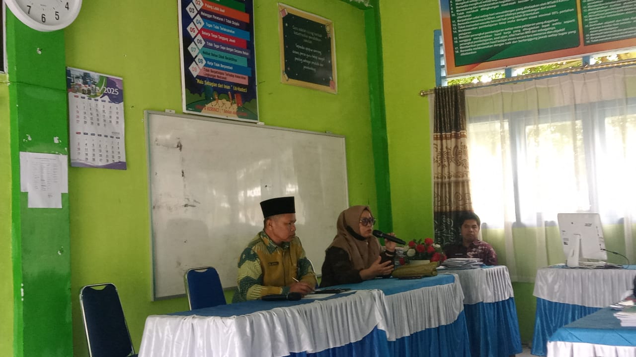 Kerinci (MTsN 6 Kerinci) – MTsN 6 Kerinci menggelar rapat penting terkait pemeliharaan armada angkutan madrasah, yang meliputi odong-odong dan bus sekolah. Rapat ini dipimpin langsung oleh Kepala Madrasah, Hj. Tistiarni, S.Ag., M.Pd.I., dan dihadiri oleh para pendidik serta tenaga kependidikan (PTK) di ruang guru.