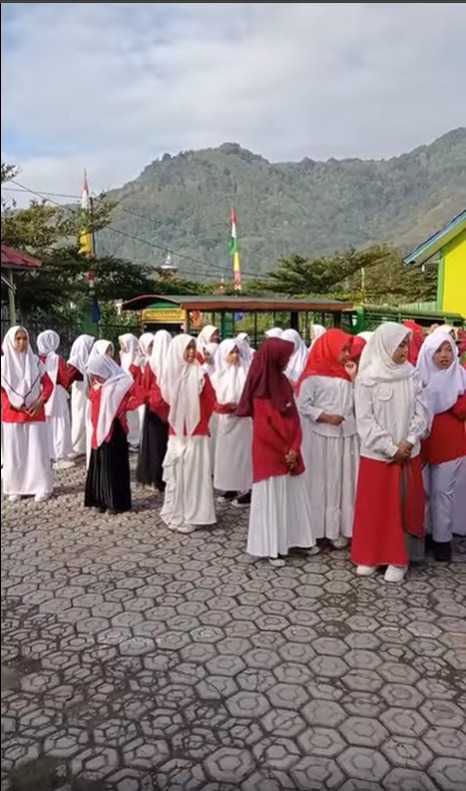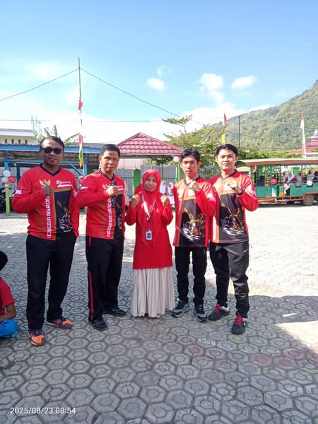 Kerinci (MTsN 6 Kerinci) – Suasana kemerdekaan tampak begitu kental di MTsN 6 Kerinci pada Sabtu (23/8/2025). Sejak pagi, area madrasah dihiasi dengan bendera dan dekorasi merah putih yang semakin memperindah lingkungan sekolah. Tidak hanya itu, para Pendidik dan Tenaga Kependidikan (PTK) bersama seluruh siswa kompak mengenakan pakaian bernuansa merah putih.