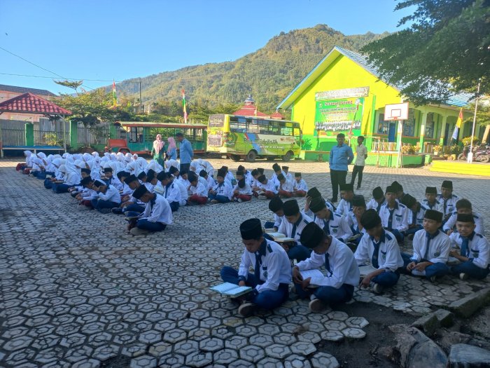 Kerinci (26/08/2025)…Seluruh siswa MTs Negeri 6 Kerinci membiasakan membaca Alquran secara rutin sebelum kegiatan pembelajaran berlangsung di dalam kelas. Kegiatan tilawah ini dipimpin oleh Siswa dan siswi Kelas VII A dengan Wali kelasnya Ibu NESVA RULINA, S. Pd. yang mendapatkan tugas sesuai jadwal yang telah di tentukan. Pemimpin Baca Al-Quran hari ini ialah FAZEL sedangkan untuk Pembaca Doa ialah RAKA