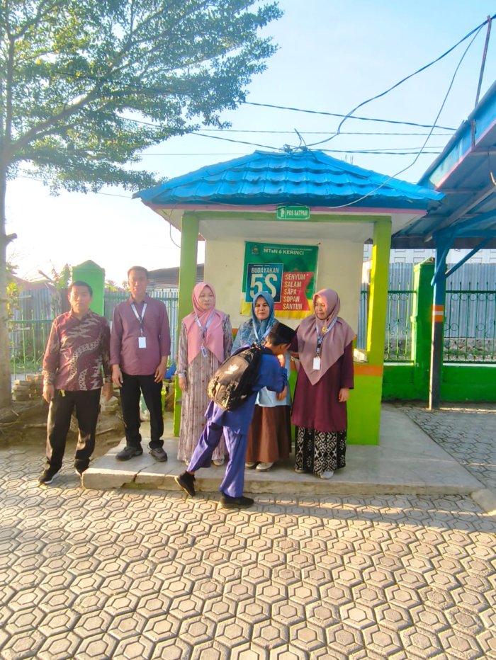 Kerinci (29/08/2025)….. Suasana Kekeluargaan penuh kehangatan begitu terasa sejak pagi hari di MTsN 6 Kerinci setiap pagi hari sebelum masuk kelas dan memulai pelajaran, Guru yang menjadi petugas Piket selalu bergantian untuk Menyambut dan menunggu siswa dengan senyuman dan tangan terbuka untuk bersalaman.