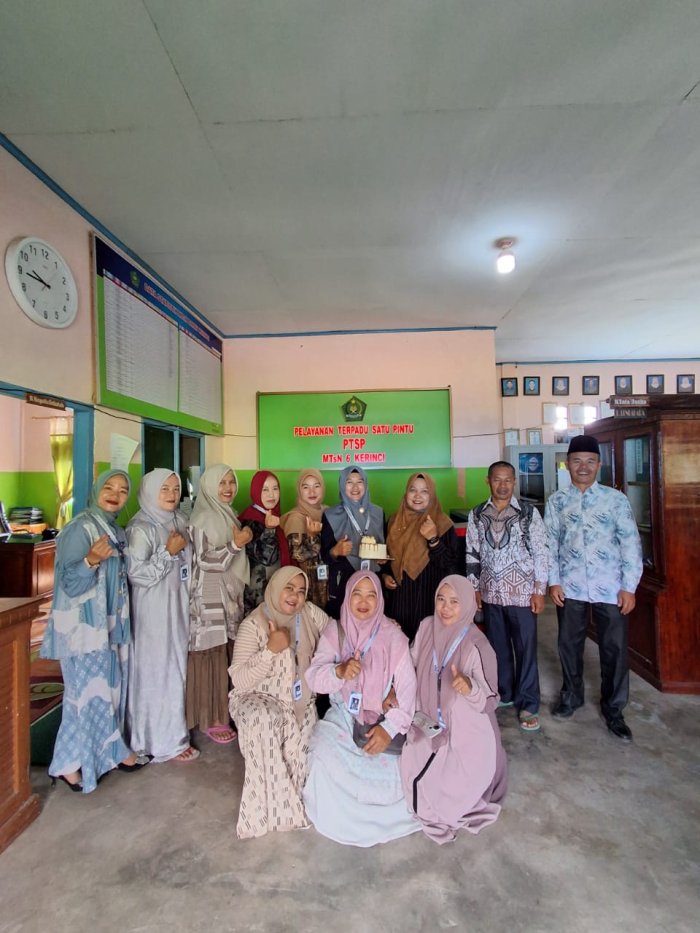 Perayaan ulang tahun ini menjadi bukti nyata bahwa kekeluargaan dan kebersamaan di lingkungan MTsN 6 Kerinci terus terjaga, menjadikan suasana kerja lebih harmonis dan penuh semangat……(Tim Website MTs N 6 Kerinci).