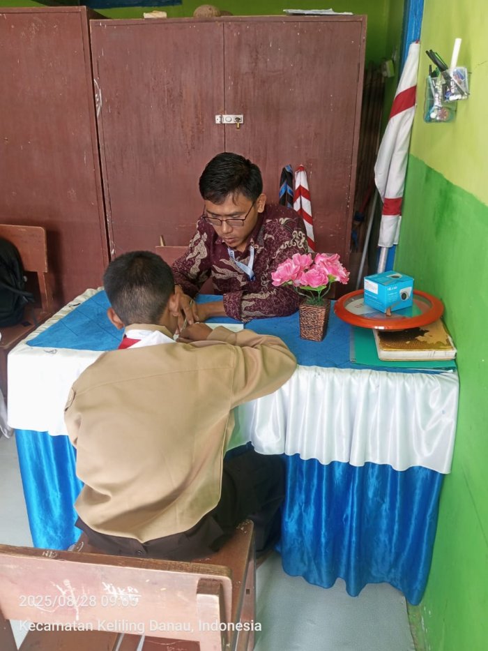 Kerinci (29/08/2025)…. Kepedulian terhadap peserta didik kembali ditunjukkan oleh salah satu guru MTsN 6 Kerinci, Bapak Agung Pamuji, S. Pd. Beliau dengan sabar mendampingi siswa-siswi yang masih mengalami kesulitan dalam membaca.